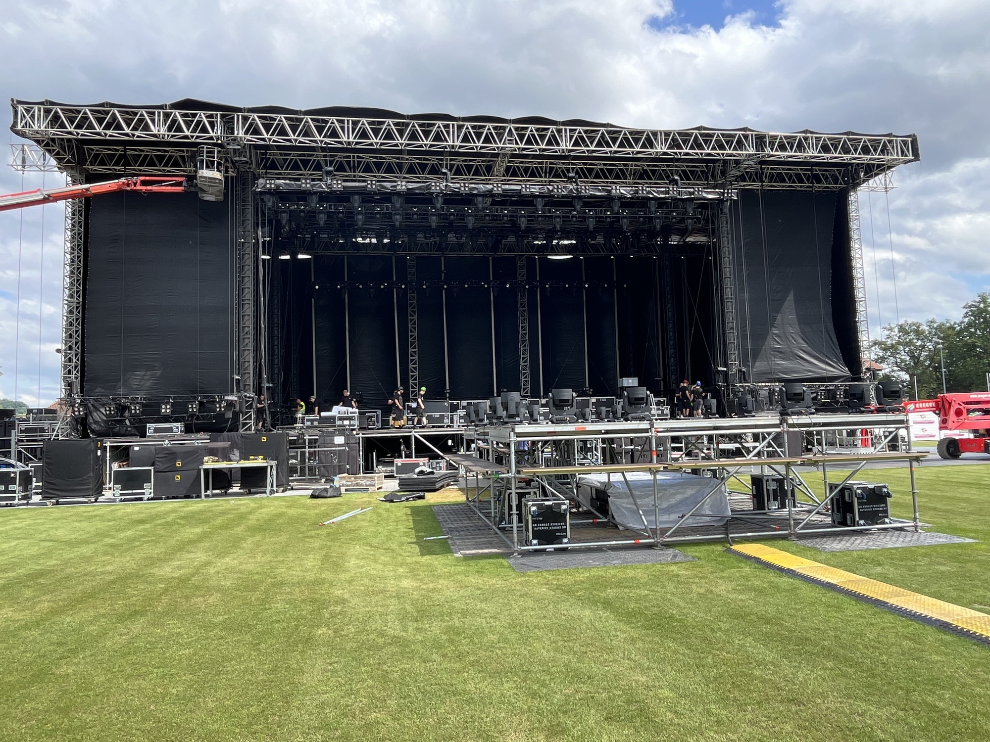 „Hab’ mal Mäuschen gespielt“, postet Sängerin Andrea Berg auf ihrem Instagramkanal. Das Klappern von Stahl und Stimmengewirr ist zu hören. Dass die Arbeiten an der Bühne für ihr 17. Heimspiel in der „WIRmachenDRUCK“-Arena in vollem Gange sind, sieht man eindeutig in diesem kurzen Video. Am vergangenen Freitag hatte auf dieser sogenannten Grundbühne noch Roland Kaiser sein Konzert gegeben (wir berichteten).