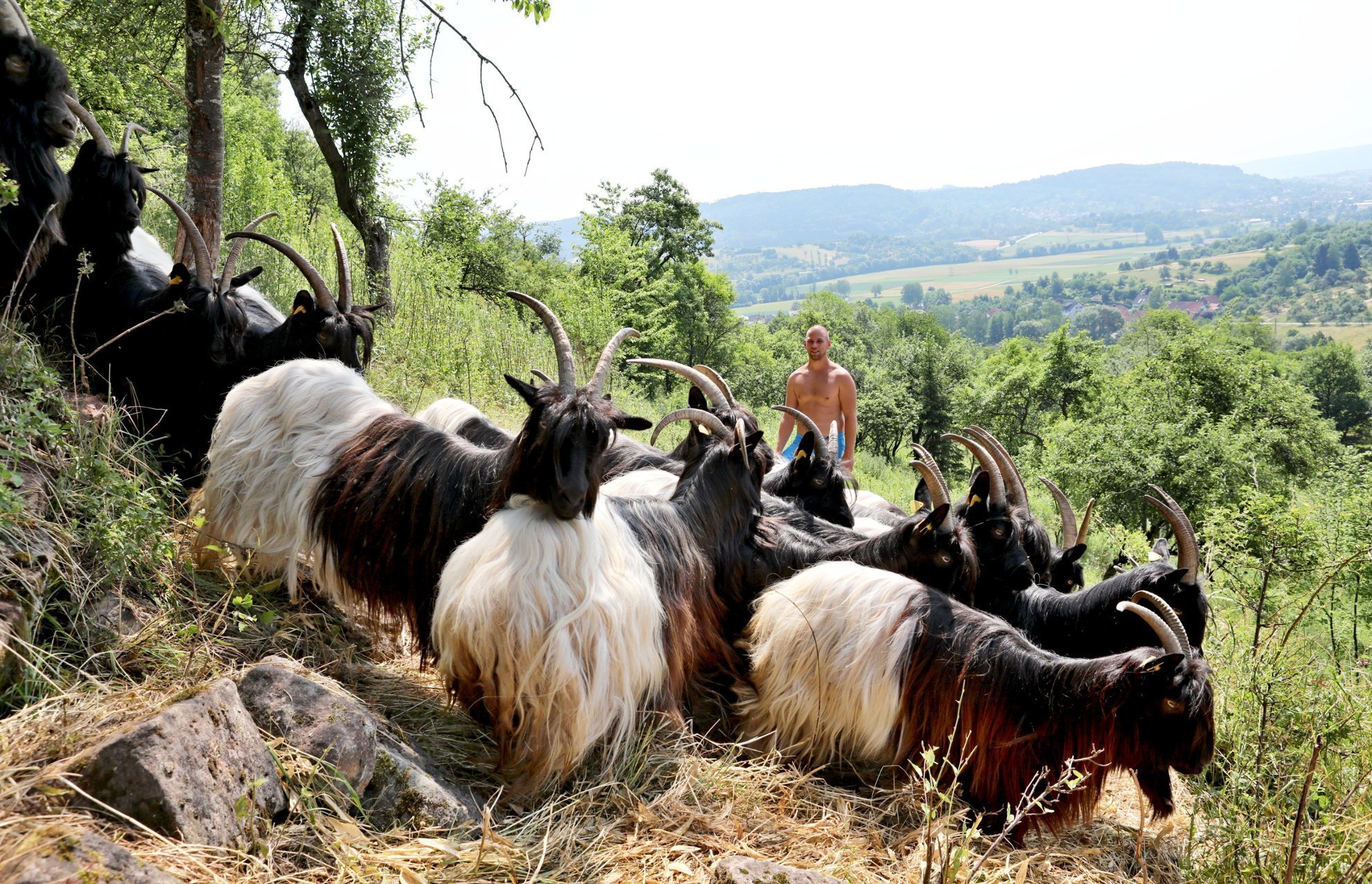 Wie erfolgreiche Landschaftspflege funktionieren kann, demonstrierten Roland Blümle und Bürgermeister Raimon Arens in Rettersburg. Sie stellten bei der Exkursion eines der von der LEV betreuten Projekte vor: Seit März lässt Ziegenhalterin Lea Mundorf von 18 Waliser Schwarzhalsziegen circa zwei Hektar Waldrandbiotop beweiden. In den Jahren 1830 bis 1860 wurden in die Steillage Trockenmauern für den Weinbau eingezogen. Der wurde allerdings noch vor dem Ersten Weltkrieg wieder aufgegeben. Nach den 70er-Jahren sei das Gelände dann zunehmend verwildert, bis es um die Jahrtausendwende durch den Landkreis „entbuscht“ und zur Beweidung freigegeben wurde.