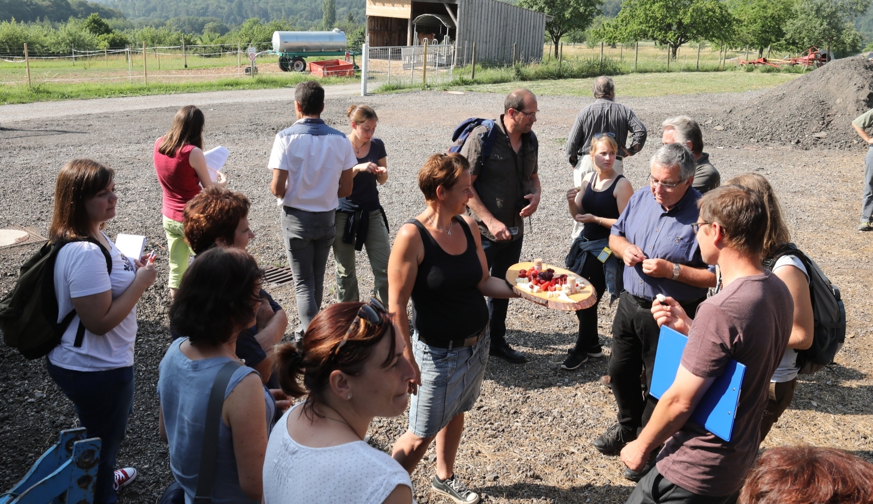 Am Mittwoch früh hatte die zweite Mitgliederrundfahrt des Landschaftserhaltungsverbandes Rems-Murr (LEV) in Backnang begonnen. Der LEV ist in der Backnanger Außenstelle des Landratsamts beheimatet. Erstes Ziel war die Milchschäferei Schmid, die Melanie und Sebastian Schmid in Berglen-Birkenweißbuch betreiben. 120 Tiere der Rasse Lacaune gehören zum Betrieb, davon wird die Hälfte gemolken. Die Lämmer bleiben im Stall, die erwachsenen Tiere werden tagsüber auf die Weide getrieben und abends gemolken. Über Nacht dürfen sie dann zu den Lämmern, so dass die sich satt trinken können. Die Tiere geben von April bis Oktober Milch; 40 bis 45 Liter Milch Tagesausbeute werden dann zu Frisch- und Weichkäse, Quark und Jogurt verarbeitet und im Hofladen verkauft.