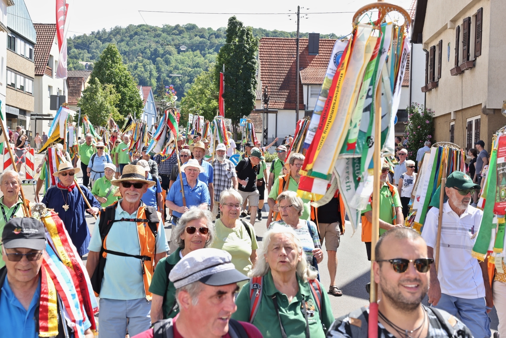 Der Deutsche Wandertag hat Tausende und Abertausende Teilnehmer ins Remstal und nach Fellbach gelockt. Das Grande Finale bildete ein spektakulärer Umzug durch Fellbach; wir zeigen die schönsten Bilder – von der Brandenburger über die Odenwälder bis zur Gmünder Gruppe, vom Spessart bis nach Schlesien ... Ein Farbenstrudel aus Fahnen und Wimpeln, nebst Trompeten und Trommeln, mit Unmengen lachender Gesichter.