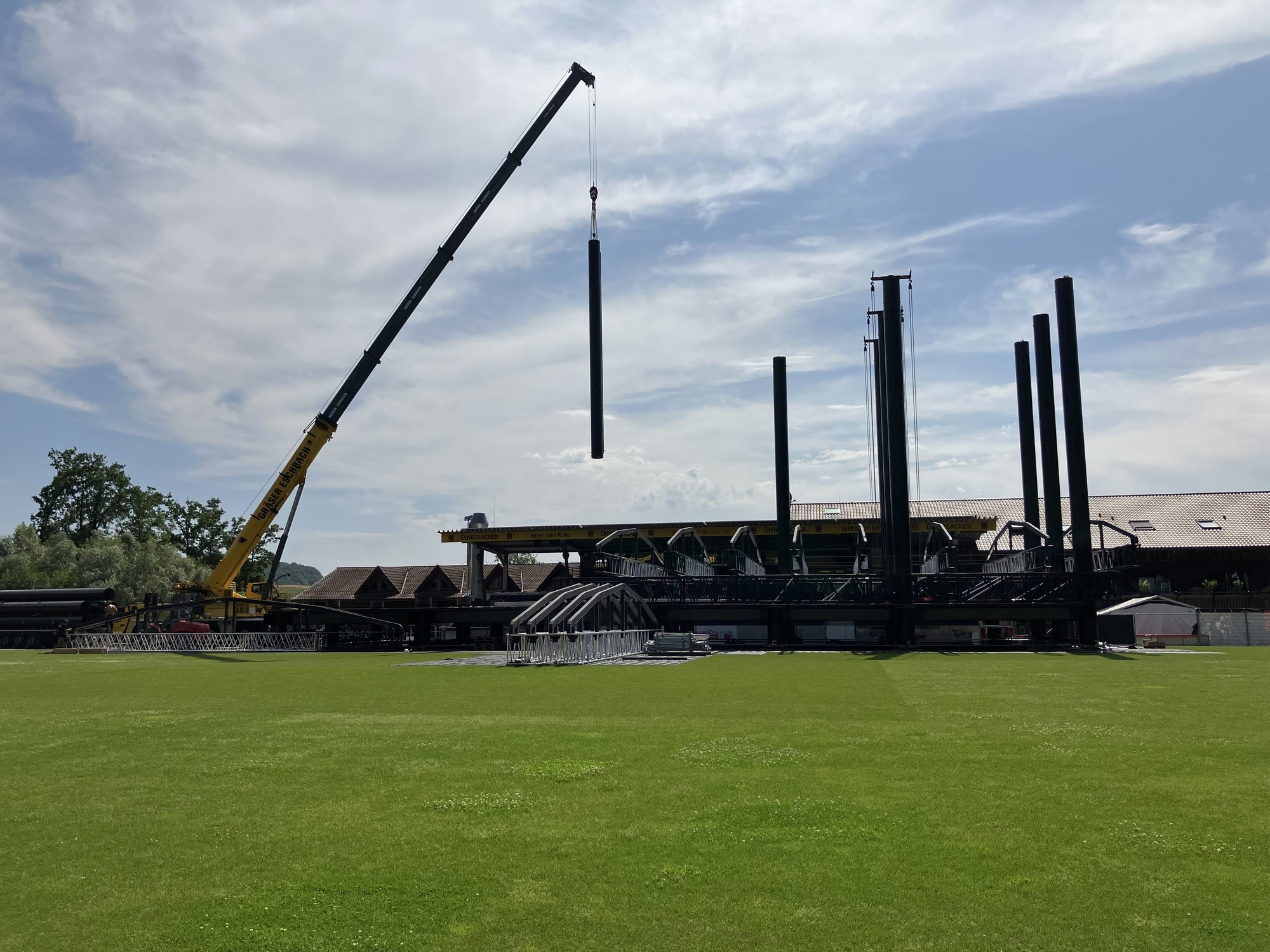 Das gab es noch nie: Nicht dass die Bühne für das 16. Heimspiel von Sängerin Andrea Berg am 14. und 15. Juli im Fautenhau in der Aspacher „WIRmachenDRUCK“-Arena allein schon imposant genug wäre – jetzt wird noch genau daneben ein Riesenrad im nostalgischen Design vom Familienunternehmen Noack aus Paderborn montiert. Während die Aufbauarbeiten der Hauptbühne in vollem Gange sind, wird dieses Riesenrad am Mittwoch, 12. Juli, aufgestellt, um dann am Veranstaltungswochenende mit rund zehn
