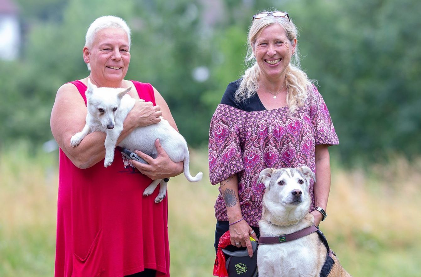 Haben schon ihre Hunde vor dem sicheren Tod gerettet: Sybille Impagliatelli mit Nana aus Allmersbach im Tal (links) und Petra Hiller-Goerzen mit Stan aus Althütte. © Alexander Roth