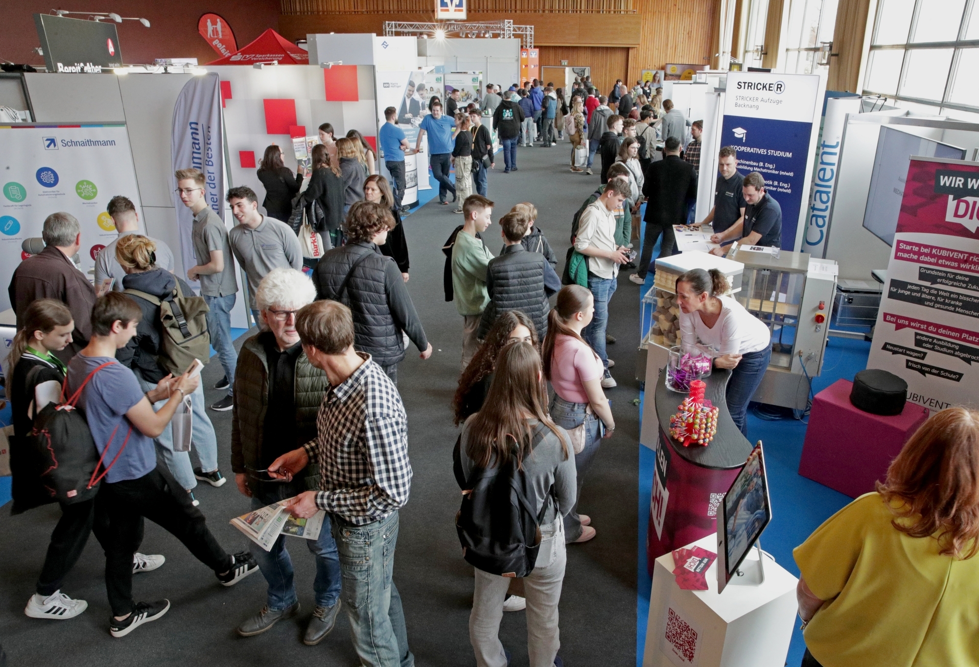 Schon um 10 Uhr am Freitagmorgen (15.03.) herrscht Trubel rund um die Bildungszentren in Winnenden. Dort findet noch diesen Samstag, 16. März, die Berufsmesse „Fokus Beruf“ statt. Begonnen hat sie bereits am Freitag. Von 9 bis 15 Uhr stellen sich mehr als 100 Unternehmen vor und erklären, welche Ausbildungs- und Studienmöglichkeiten es bei ihnen gibt.
