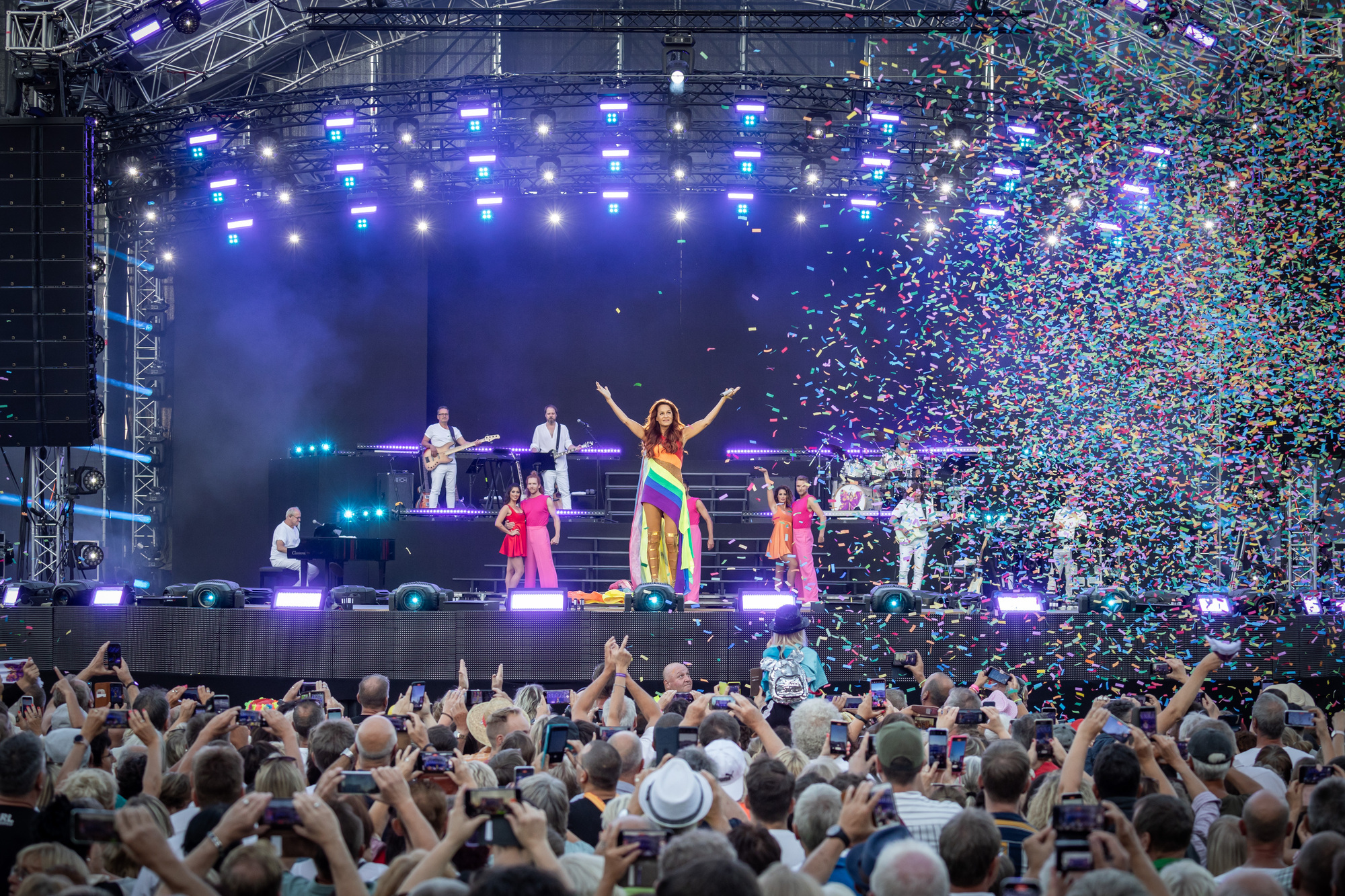 „Das sieht schon geil aus, wenn man von hier oben in die Arena schaut“, Uli Ferber hält inne und freut sich: „Sensationell.“ Der Ehemann von Andrea Berg steht mit SWR4-Moderator Matthias Methner auf der großen Bühne im Fautenhau. In wenigen Stunden wird seine Frau nach zwei Jahren Corona-Pause wieder ohne Auflagen mit ihrem Publikum ihr traditionelles Heimspiel feiern – mittlerweile das 15.