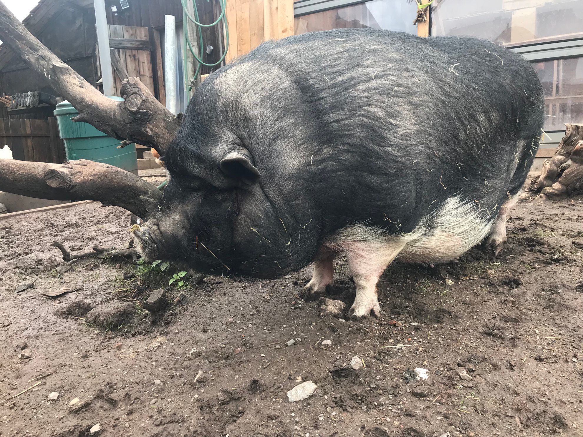 Martina Theurer hat 2013 damit begonnen Tiere aufzunehmen, die keiner mehr wollte. Zwei Hähne machten den Anfang, später kamen Schafe, Esel, verschiedenste Vögel, Hunde und die beiden Hängebauchschweine dazu. „Hanni und Nanni waren als Ferkel in einer kleinen Wohnung an die Heizung gekettet“, erzählt Theurer. Die Freunde des 19-jährigen Besitzers fanden es wohl witzig ihm die beiden Schweinchen zum Geburtstag zu schenken. Später wusste er nicht wohin damit.