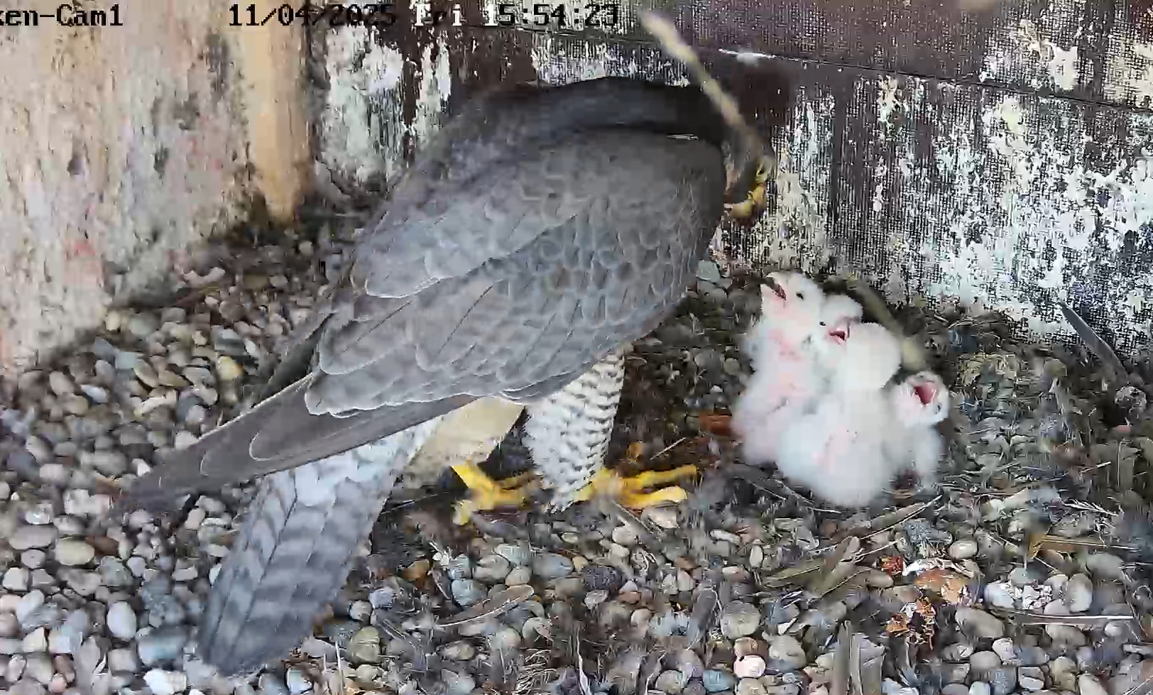 Das Quartett sei jetzt komplett, schreibt Friedemann Tewald. Und schickt Fotos von der Falkenkamera mit,