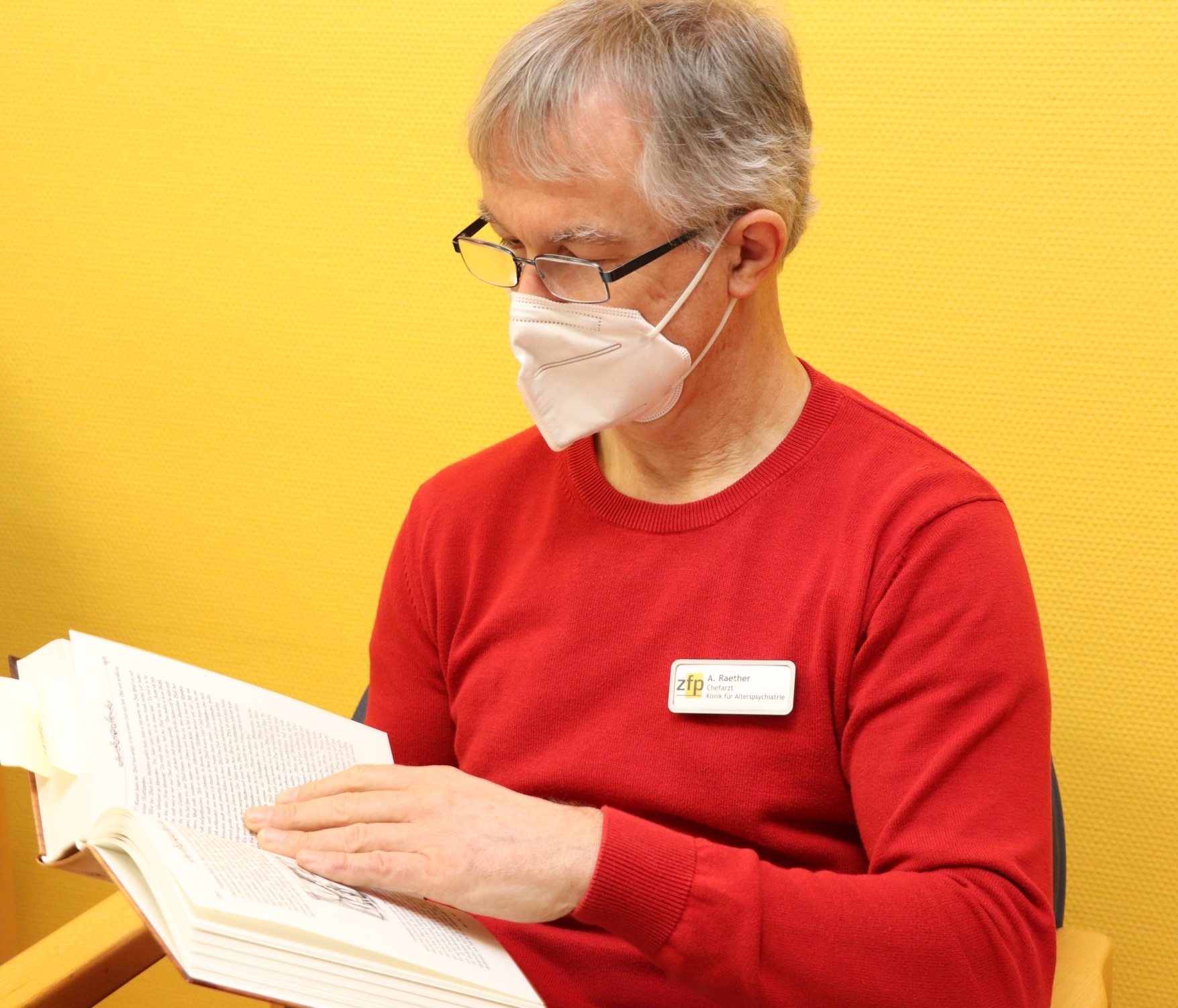 Andreas Raether schlägt das dicke Buch auf seinem Schoß auf und beginnt zu lesen. „Die Bremer Stadtmusikanten“, gedruckt in altdeutscher Schrift und mit schwarz-weißen Zeichnungen illustriert. Seine Zuhörer kennen die Schriftzeichen, denn er liest an diesem Tag nicht etwa Kindern das Märchen der Gebrüder Grimm vor, sondern Senioren. In der Klinik für Alterspsychiatrie und Psychotherapie des Klinikums Schloss Winnenden ergänzt die Märchentherapie seit rund einem halben Jahr die