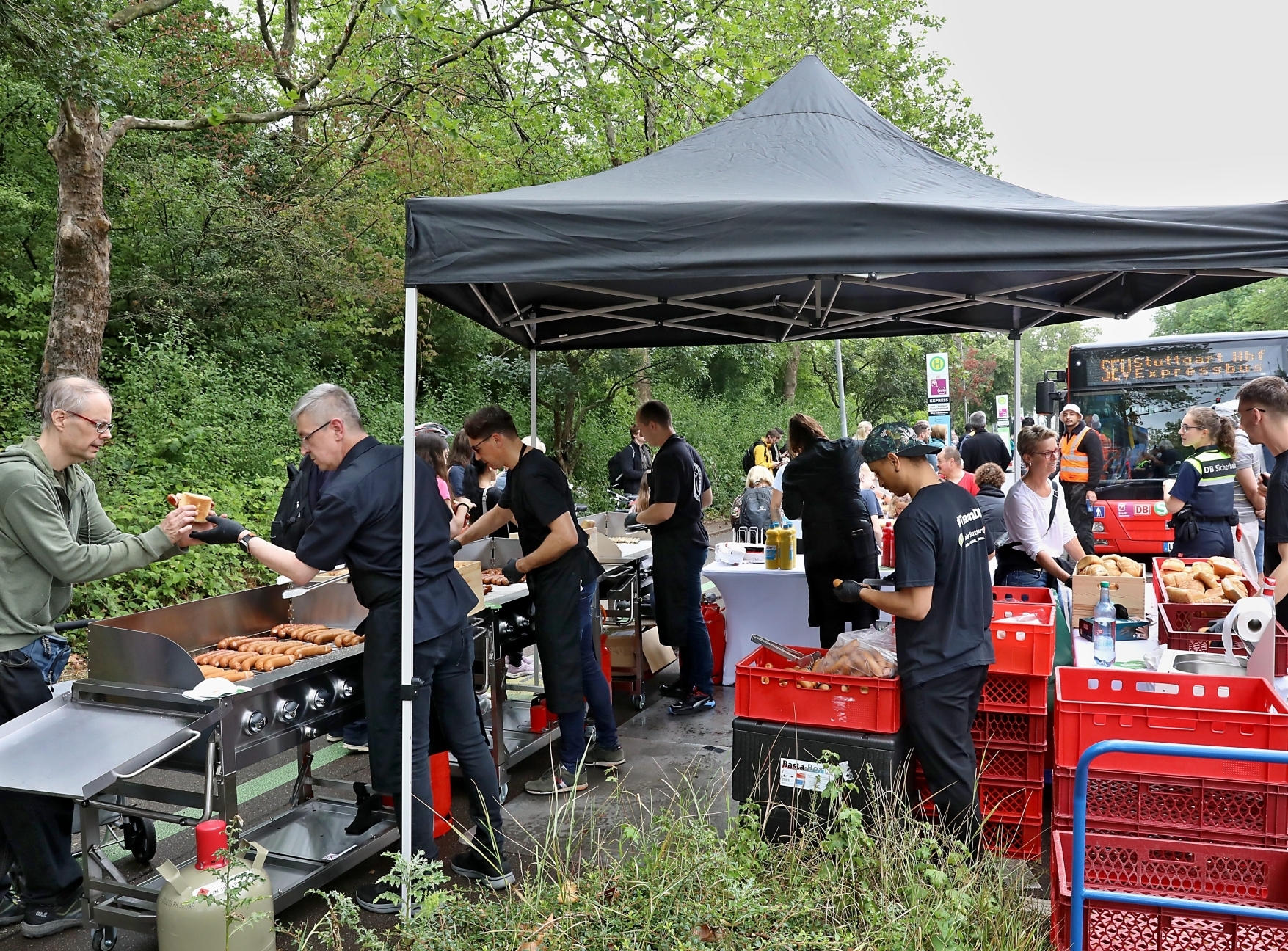 Ach du grüne Neune, um 11 Uhr soll’s losgehen: Eine Viertelstunde vorher stehen schon zwölf Leute in Reihe vor der Grillstation bei der Ersatzbus-Haltestelle in der
