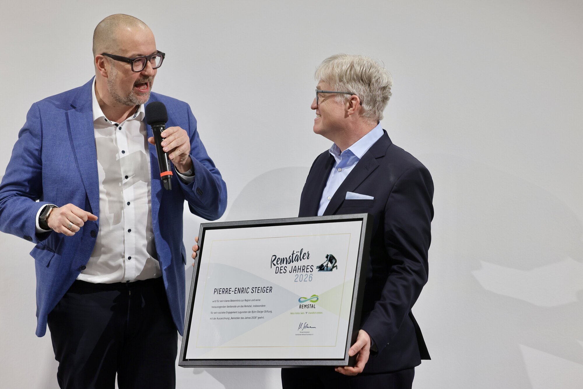 Am Samstag hat Steiger im Rahmen der Eröffnung des Weintreffs in Fellbach die Auszeichnung „Remstäler des Jahres 2026“ erhalten.