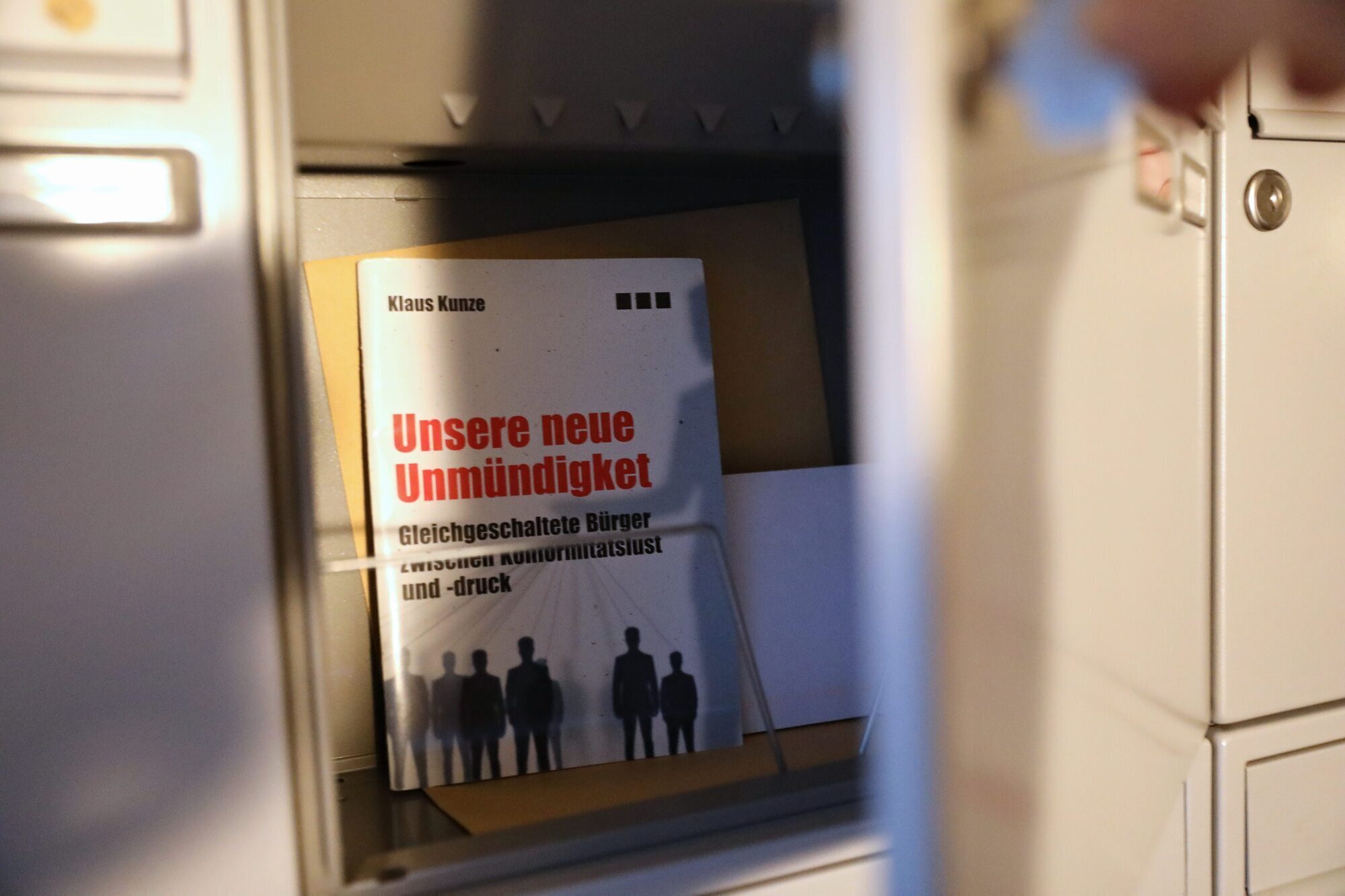 „Ich hatte heute eine sehr merkwürdige und beunruhigende Broschüre ... im Briefkasten.“ Das schreibt Jan Möhrmann in die Redaktion. Jan Möhrmann wohnt in Remshalden und arbeitet im Rems-Murr-Kreis als Lehrer an einem Gymnasium. Er fand eine Abhandlung von Klaus Kunze: „Unsere neue Unmündigkeit – Gleichgeschaltete Bürger zwischen Konformitätslust und -druck“. Verlegt vom Verein „Die Deutschen Konservativen“. Sowohl Kunze als auch der Verein hatten schon mit dem Verfassungsschutz zu tun.