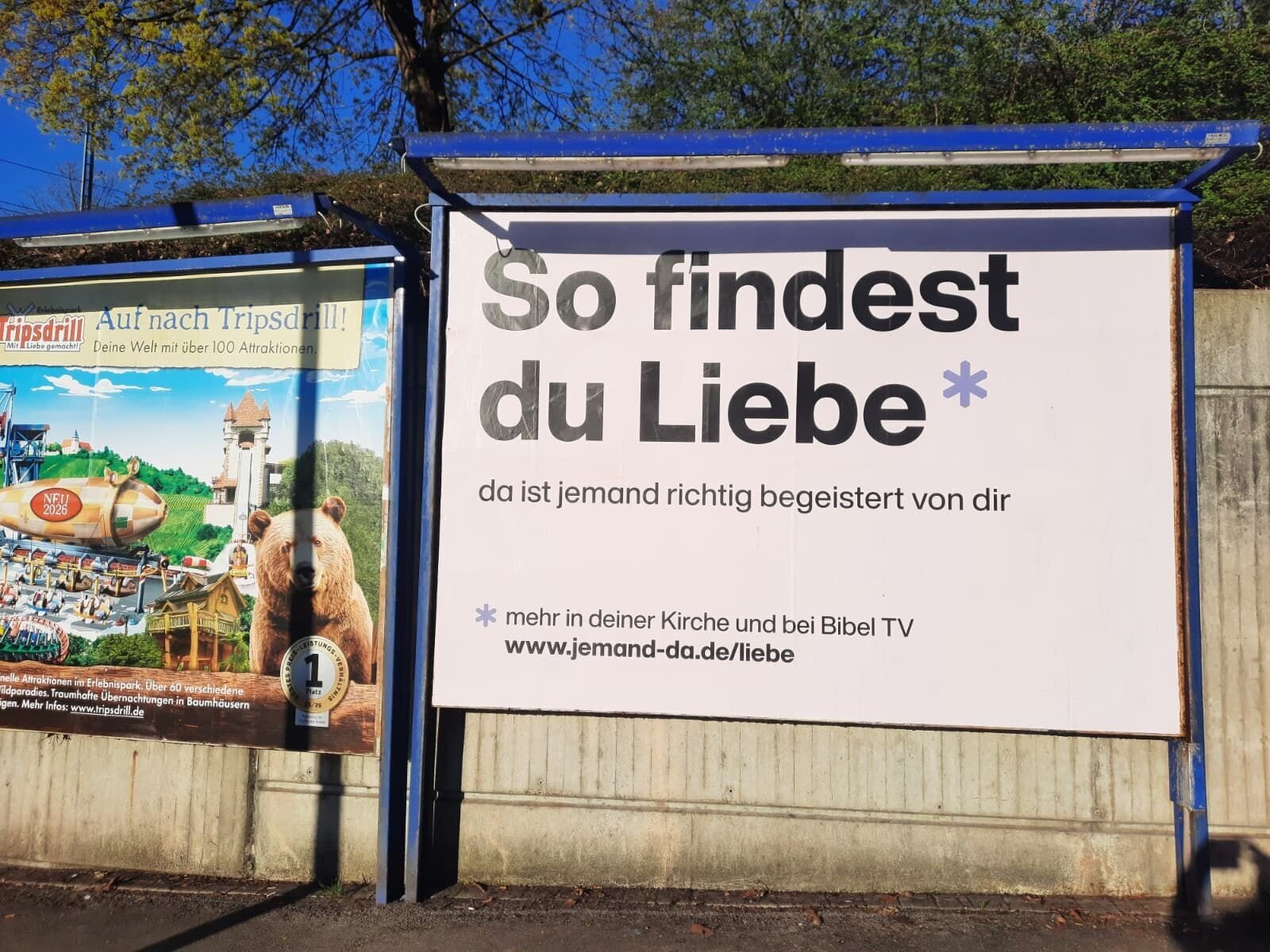 Rems-Murr-Kreis. Der Slogan knallt ins Auge: „So findest du Liebe“, prangt mehrere Quadratmeter groß von der Plakatierfläche an jenem Waiblinger Kreisverkehr, wo Devizesstraße, Mayenner Straße und Jesistraße aufeinandertreffen. Was hat es auf sich mit dem spektakulären Marketingversprechen? Entwarnung: Um Werbung für den Waiblinger Straßenstrich handelt es sich nicht; es geht um Gott. Aber wer steckt hinter der missionarischen Kleister-Offensive? Eine