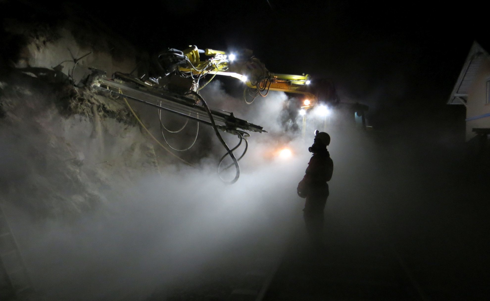 Am 30. April 2015 hätten die Arbeiter „acht bis zehn Meter von meinem Haus entfernt“ eine Verbindungsschelle an der Spritzbeton-Rohrleitung geöffnet, „ohne den Druck vorher abzulassen. Ich dachte, eine Bombe hätte eingeschlagen, und rannte in den Garten. Eine Fontäne der Betonmischung landete im Garten und setzte sich auf dem Boden, an den Metallgittern und anderen Gegenständen ab.“
