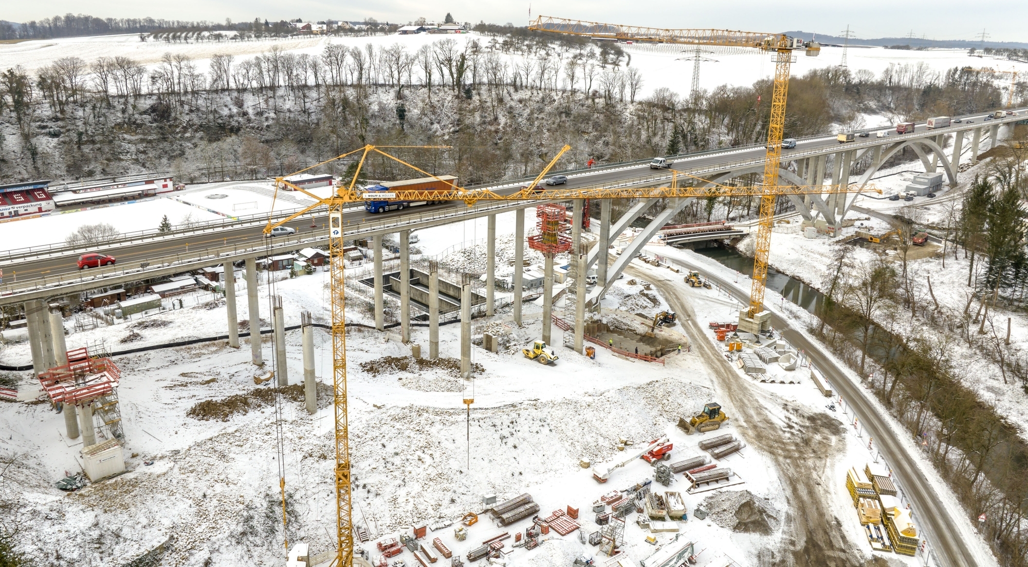 Der Bau des zweiten Murrtalviadukts ist ein Mammutprojekt, und zwar in vielerlei Hinsicht. Erstens wegen seiner beeindruckenden Größe: 20 Meter hoch, fast 400 Meter lang sowie etwa 14 Meter breit wird die Brücke, die optisch der bereits bestehenden Brücke über die Murr gleichen wird. 14.600 Kubikmeter Beton und 1790 Tonnen Stahl werden dafür zurzeit und in den kommenden Monaten verbaut. Zweitens wegen der Kosten: Rund 23,7 Millionen Euro investiert der Bund in den Ausbau der B14. Drittens