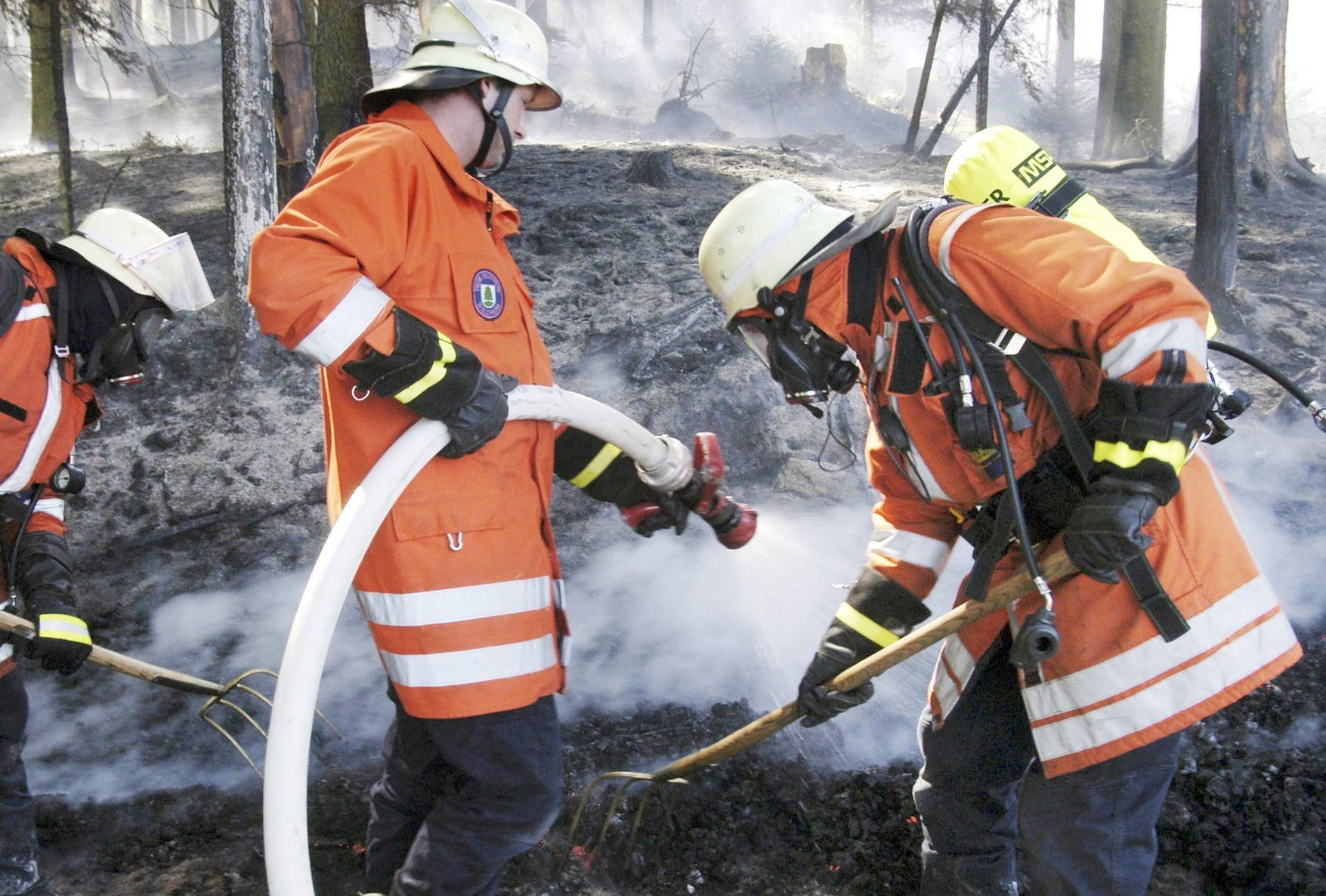 Aber Vorsicht: Auf keinen Fall soll man versuchen, eine Flamme auszuschlagen. Dabei, so heißt es, besteht die Gefahr, dass Funken auffliegen und der Brand sich ausbreitet. Eine Möglichkeit bieten ein bis zwei Meter lange Laub- oder Nadelzweige, mit denen man das Feuer zum Inneren der Brandfläche hin auskehren kann.