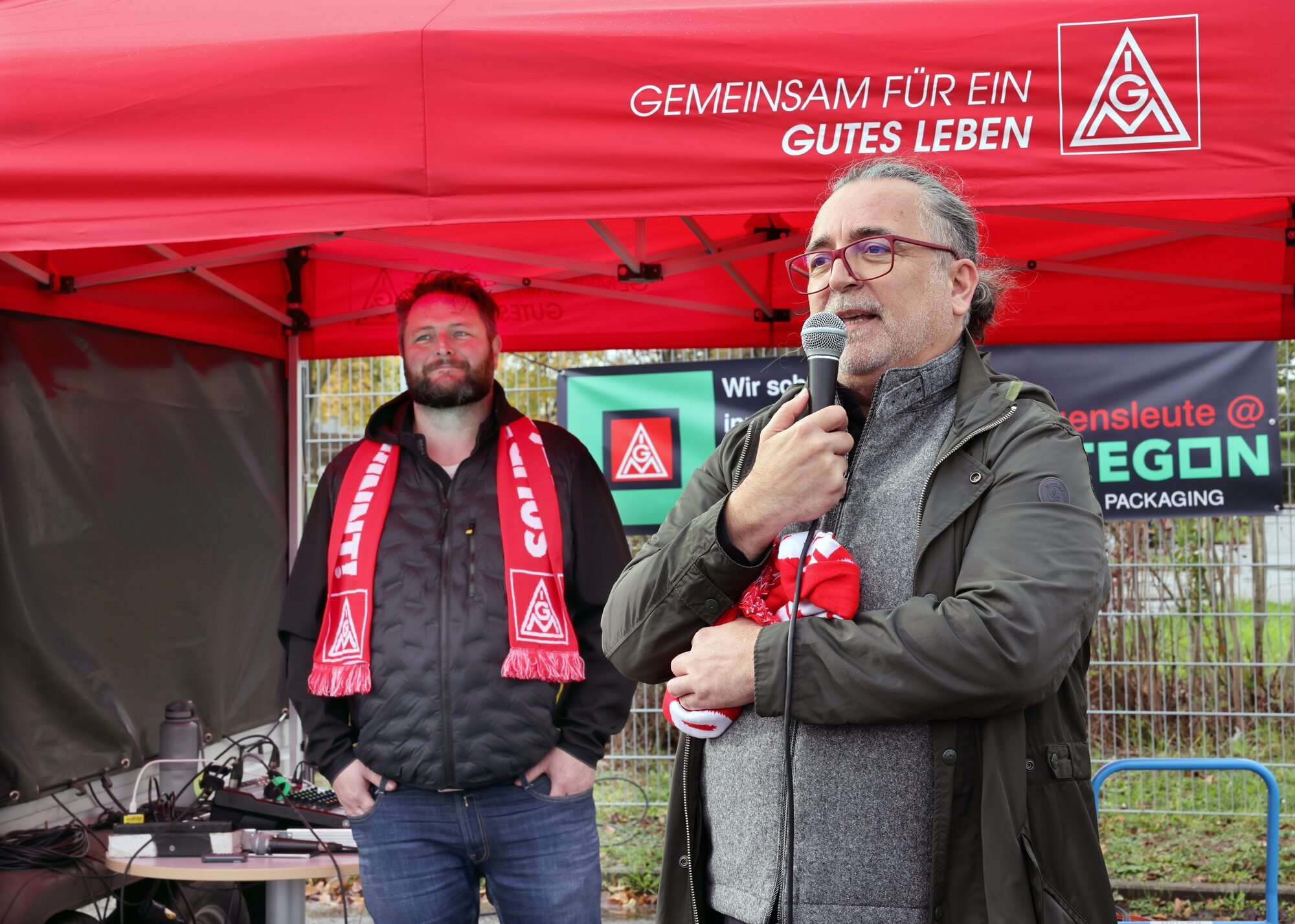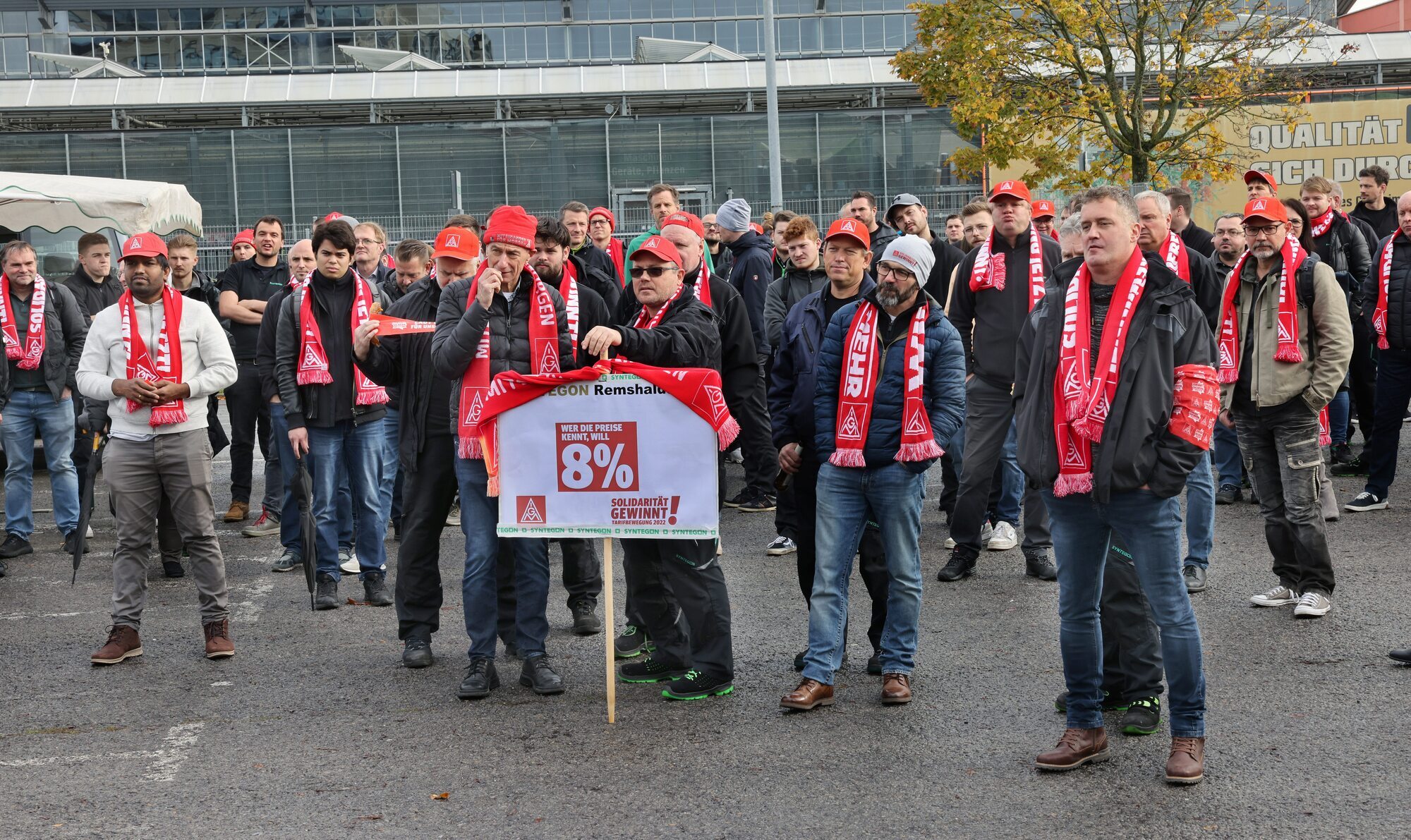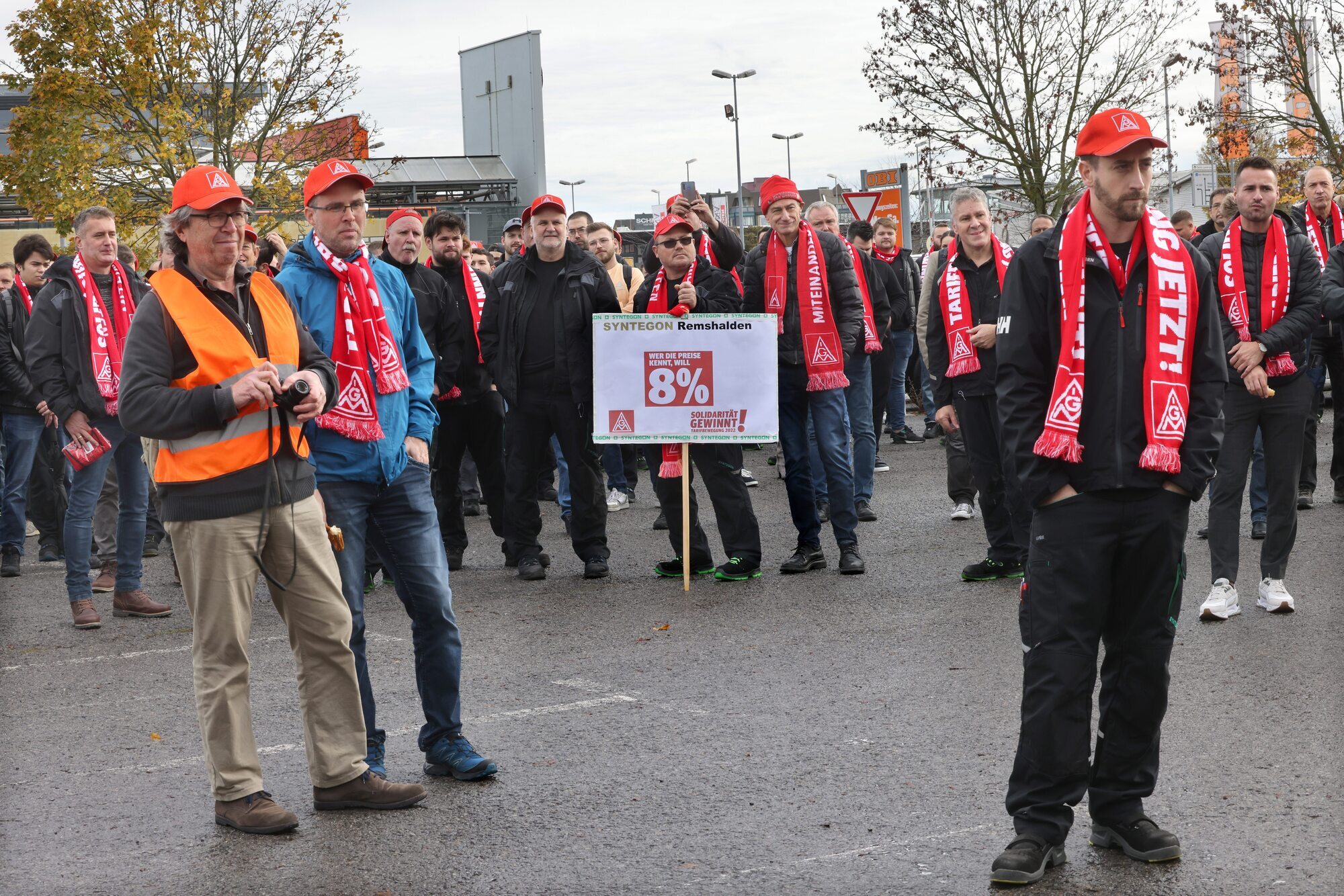 Warnstreik-Aktionen am Mittwoch (9.11.) bei Stihl und Syntegon in Waiblingen sowie Bosch in Murrhardt. „Die Arbeitgeber sollten den Weckruf hören und unsere Bereitschaft, voll in den Streik zu treten, nicht unterschätzen“, sagte Matthias Fuchs von der IG Metall Waiblingen/Ludwigsburg bei der Hauptveranstaltung auf dem Besucherparkplatz von Syntegon in Waiblingen. Die Streikbereitschaft und Unterstützung der Beschäftigten sei enorm. Die Urabstimmung – über Streik oder nicht – werde schon