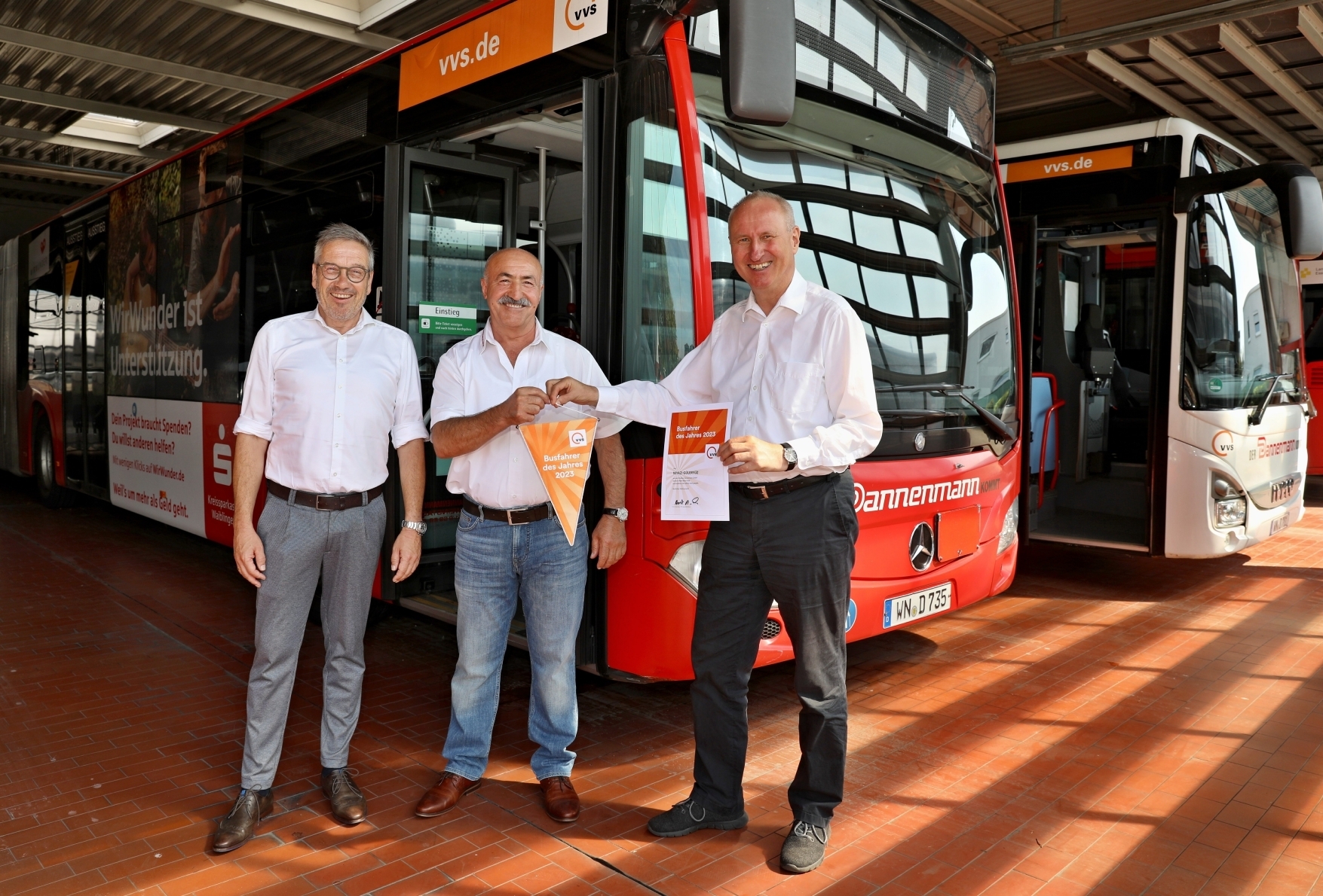 Niyazi Güleryüz fährt als Busfahrer für das Unternehmen Dannenmann im Raum Winnenden – und ist in diesem Jahr zum „Busfahrer des Jahres“ gewählt worden. Zu dieser Auszeichnung haben ihm am Donnerstag Dannenmann-Chef Markus Dannenmann und VVS-Geschäftsführer Horst Stammler gratuliert.