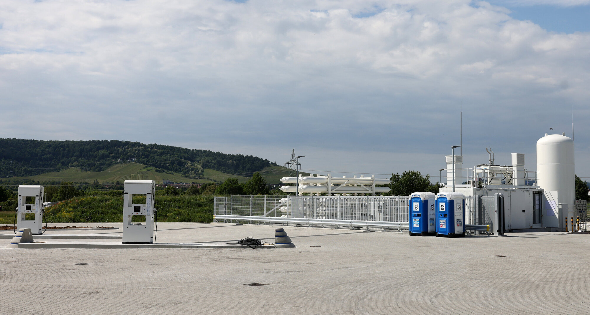 Die geplante Wasserstoff-Tankstelle im Ameisenbühl in Waiblingen. Die Eröffnung verzögert sich, es fehlt noch der Elektrolyseur. © Benjamin Buettner
