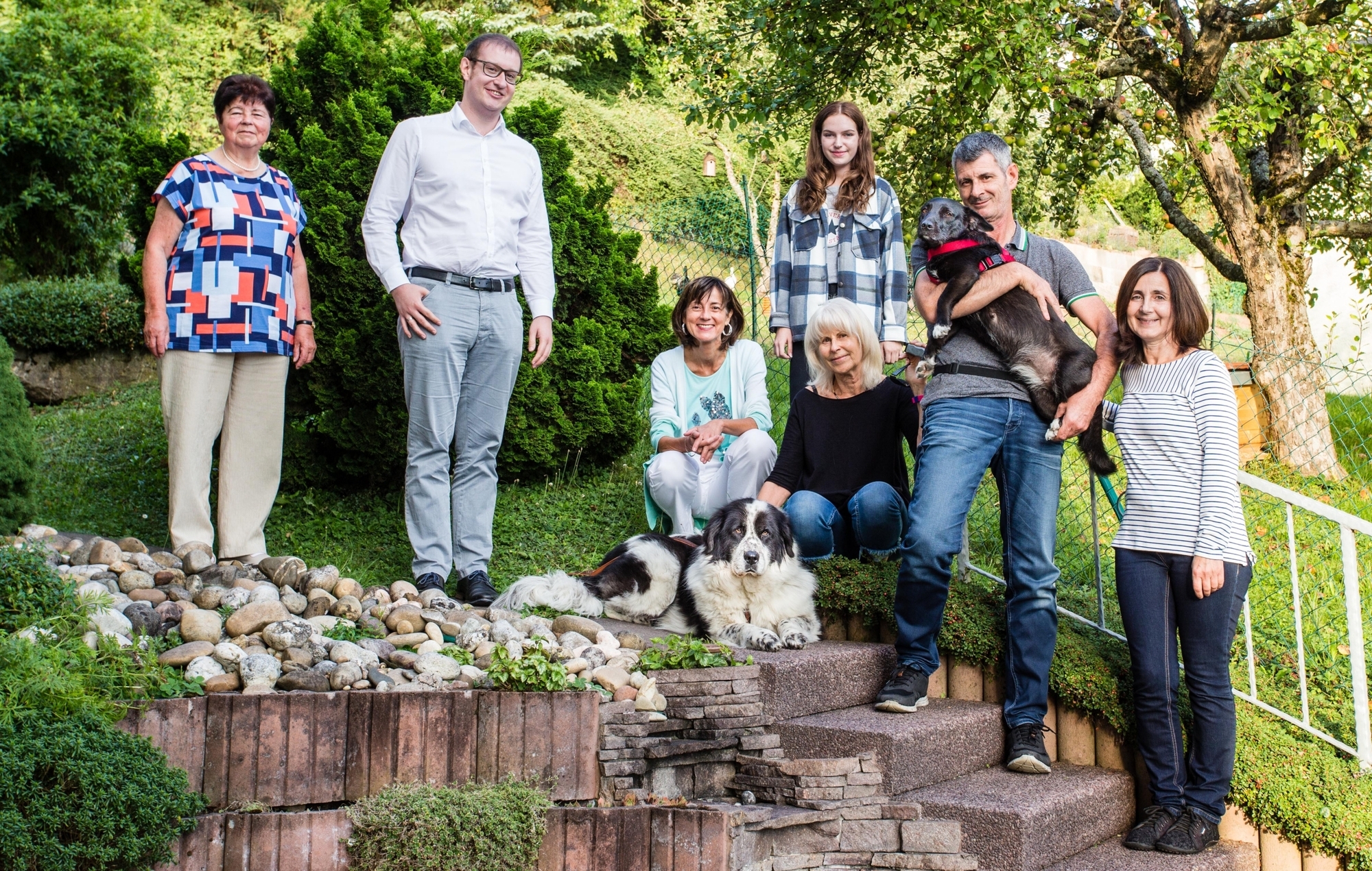 Neugierig, aber auch etwas ängstlich schaut Mischlingshündin Hannah mit ihren braunen Augen unter der Sitzbank zwischen den Beinen ihrer Besitzer hervor. „Sie ist bei Fremden immer noch vorsichtig, aber mittlerweile hat sie wieder Vertrauen zu Menschen gefasst“, sagt Daniel Petschenig und krault Hannah den Kopf. Hannah wagt sich nun hervor. Ihre Vorderläufe sind ein wenig nach außen deformiert, das Fell schwarz, die Pfoten weiß, was die Putzigkeit noch verstärkt.