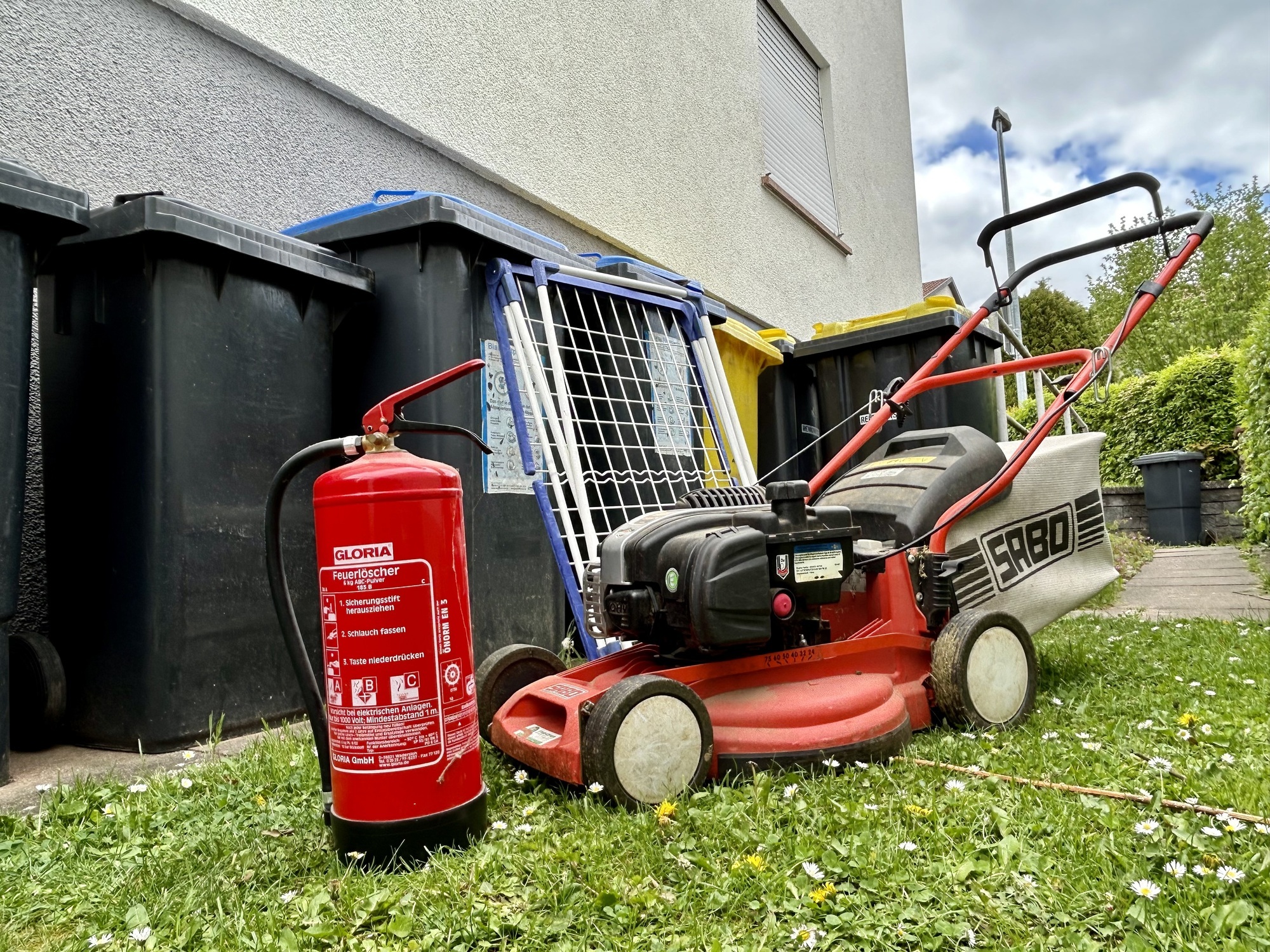 Da steht er: leuchtend rot und eigentlich lebensrettend. Ein Feuerlöscher. Bei diesem aber ist seit Jahren der Tüv abgelaufen. Und im Internet gibt’s Filmchen zu sehen, die zeigen, dass solche Geräte Furchtbares anrichten können. Er soll weg. Aber wohin? Und wenn wir schon beim Suchen sind: Der uralte Benzinrasenmäher gehört auch auf den Müll. Aber auf welchen?