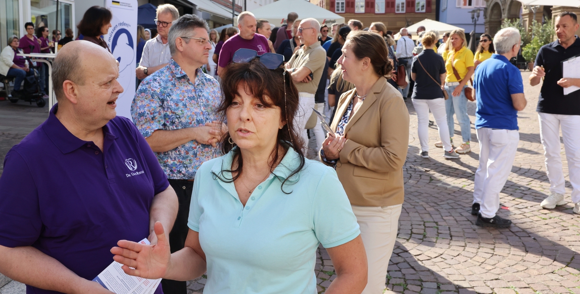 Zu einer Sprechstunde der anderen Art luden am Dienstagmorgen (18.06) etliche Zahnärzte. Gut 60 Vertreter ihrer Zunft samt Personal versammelten sich um einen Stand im Stadtkern von Waiblingen. Ihre Praxen wie auch die vieler Kollegen in ganz Baden-Württemberg blieben an diesem Tag geschlossen. Ihr Ziel: bessere politische Rahmenbedingungen.