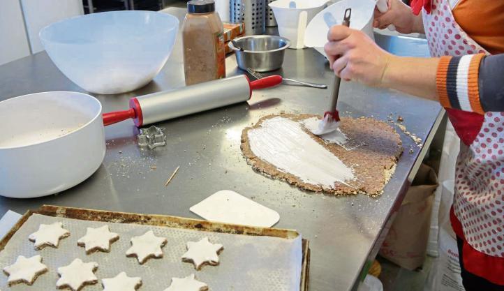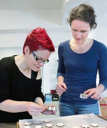 Nah ans Original heran kommen zum Glück die veganen Weihnachtsplätzchen, die ich mit Zsuzsanna Banvölgyi-Stadler, alias Leckerschmecker Küchenfee, aus Hegnach backe. Zimtsterne und Vanillekipferl - meine absoluten Lieblingsplätzchen. Die Butter wird durch Margarine ersetzt, der Eischnee durch aufgeschlagenes veganes Eiweiß. „Das merkt nachher niemand, ob da Margarine oder Butter drin ist, und bei den Zimtsternen vermisst auch niemand den Eischnee“, ist Banvölgyi-Stadler überzeugt. Und nach dem Geschmackstest muss ich ihr zustimmen: Die Zimtsterne unterscheiden sich wirklich gar nicht von konventionellen. Die Vanillekipferl schmecken mir auch, allerdings zergehen sie mir fast zu leicht auf der Zunge. Vielleicht liegt das aber schlicht an der Rezeptur - ich habe bisher meinem Kipferlteig immer ein Eigelb zugegeben.