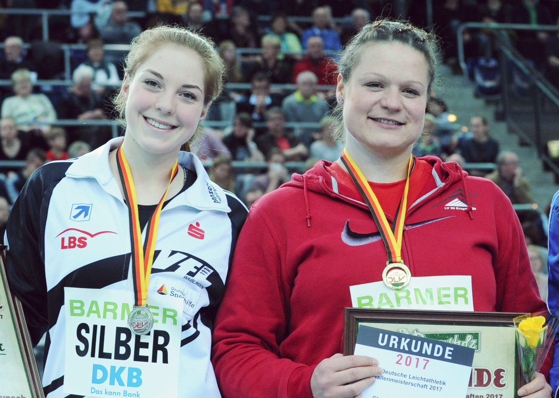 Groß war die Freude auch bei Alina Kenzel vom VfL Waiblingen. Die Kugelstoßerin gewann ihre erste DM-Medaille als Aktive. Im Kugelstoßen der Frauen wurde sie hinter der Weltmeisterin Christina Schwanitz (LV 90 Erzgebirge; 18,50 Meter) Zweite mit 17,28 m. Bronze ging an Katharina Malsch (TuS Metzingen) mit 17,11 m.
