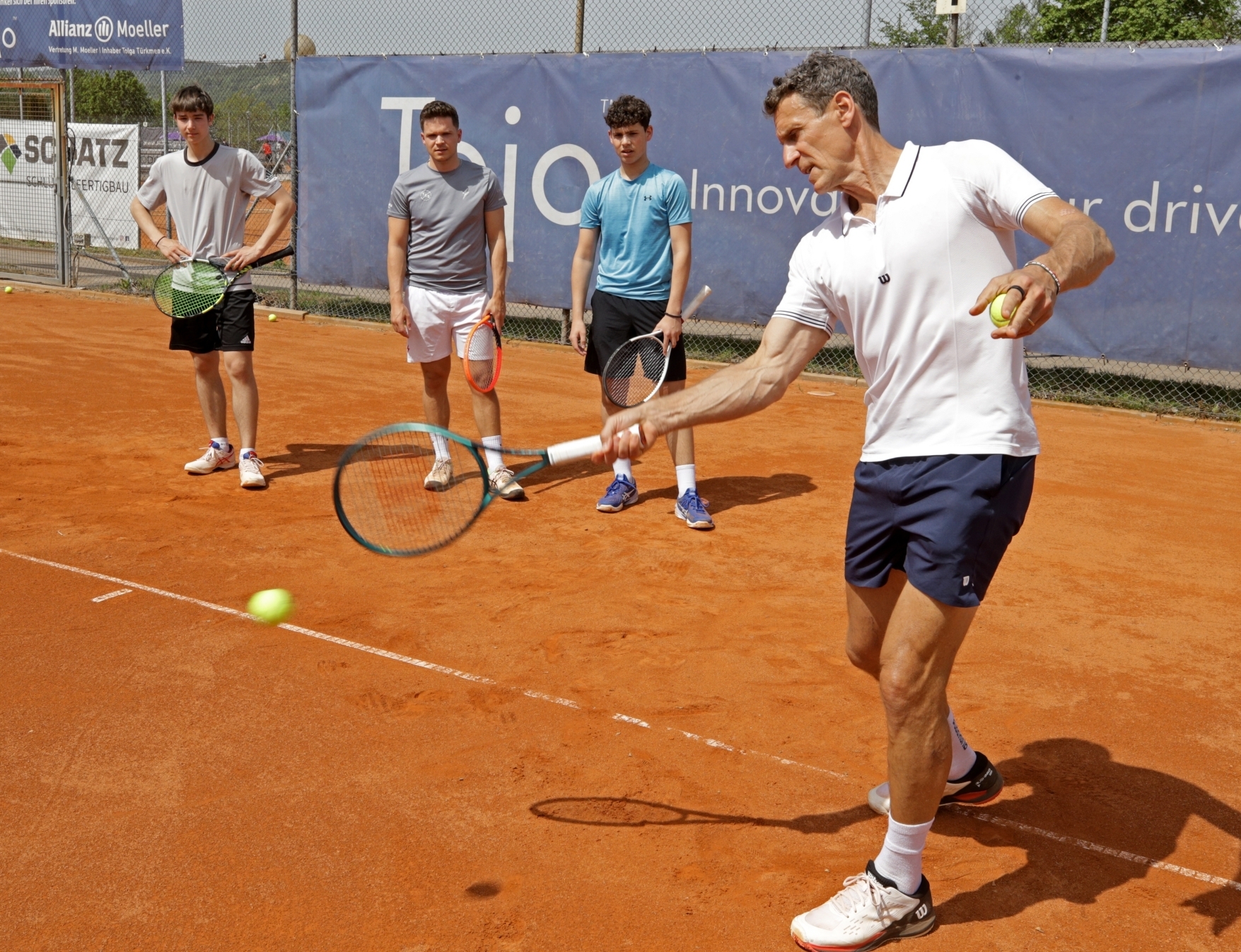 „Training mit Davis-Cup-Sieger und Kapitän des Teams Patrik Kühnen“ - das stand gestern am 1. Mai auf dem Tagesprogramm der Topspieler beim Tennis-Club Schorndorf (TCS). Und der 58-Jährige, der in Püttlingen im Saarland geboren wurde, brachte die Topspieler und -spielerinnen der Daimlerstadt gehörig auf Touren. Und zum Schluss durfte auch noch die siebenjährige Romy Szcech ran.