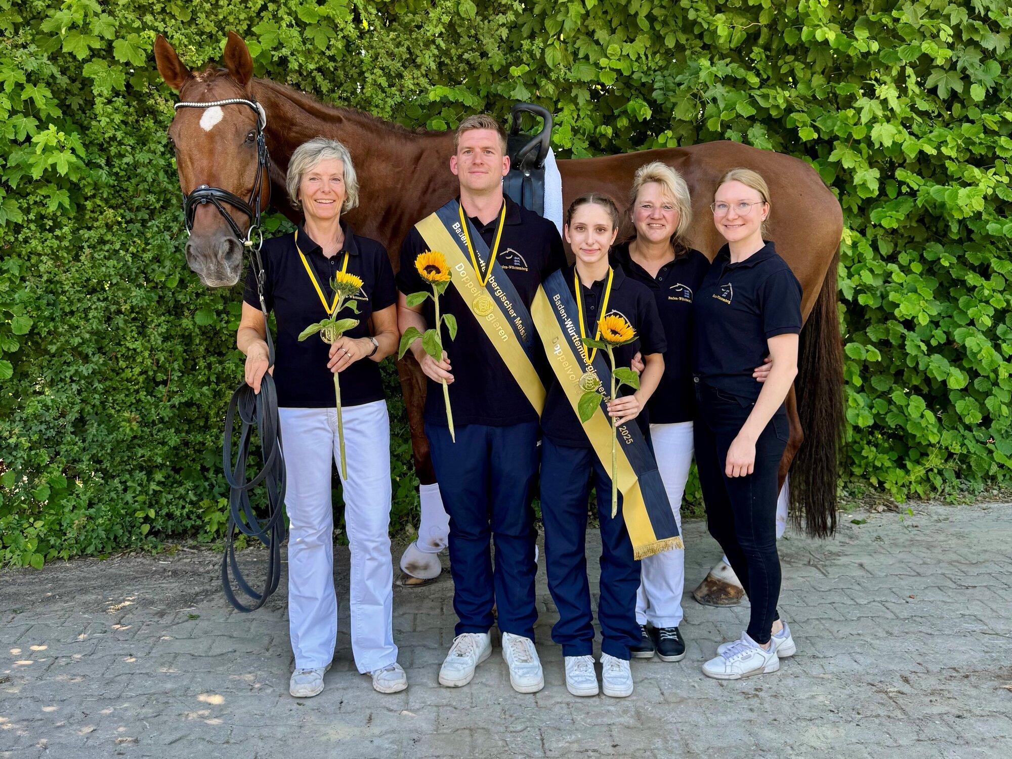 Das Team von links: Diamiro, Sabine Leutz, Simon Reber, Laura Eisemann, Nicole Wahl und Jana Schlotter. © Privat