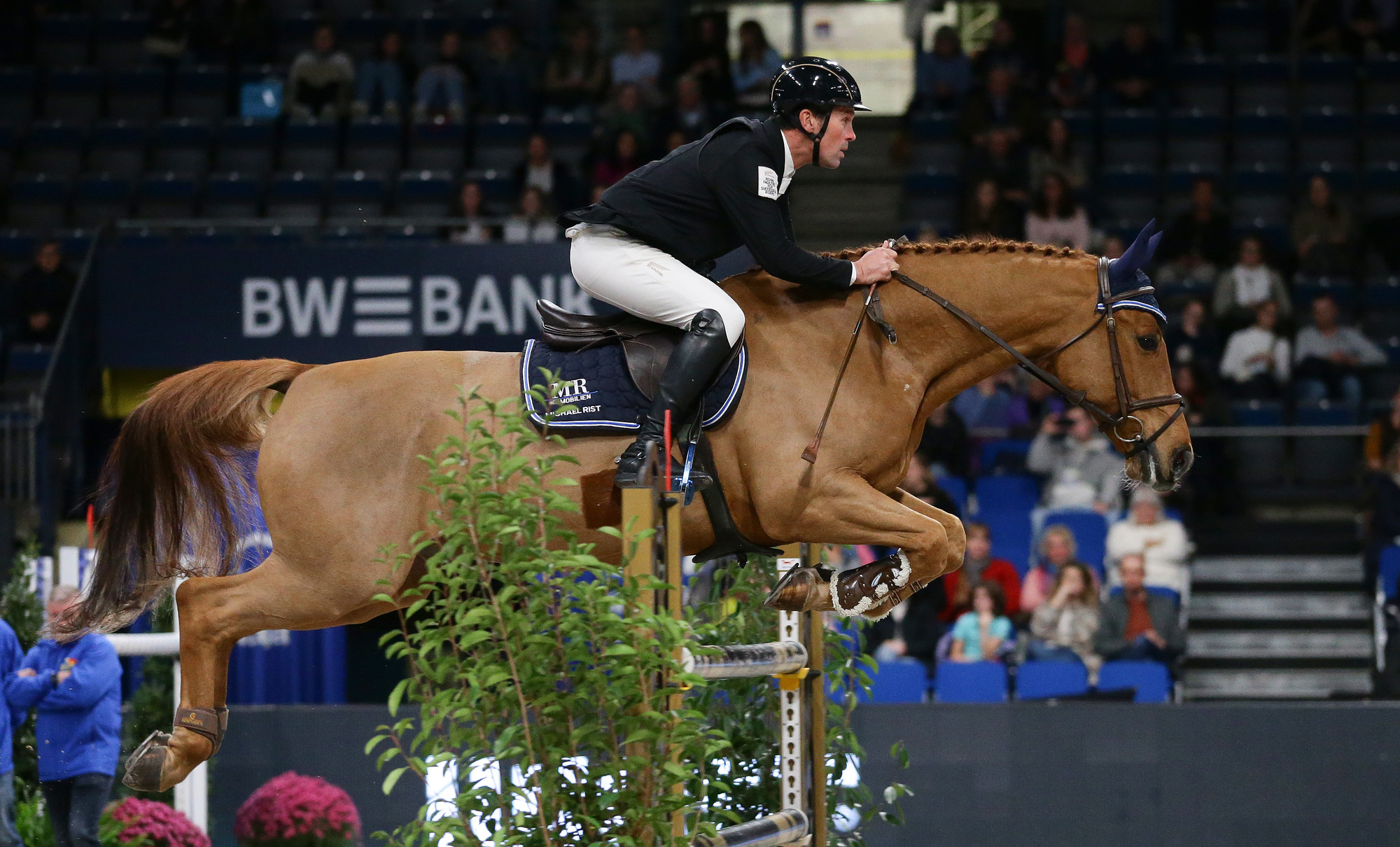 Kölz siegt mit seinem 15-jährigen Wallach Dornadello in der Schleyer-Halle in Stuttgart