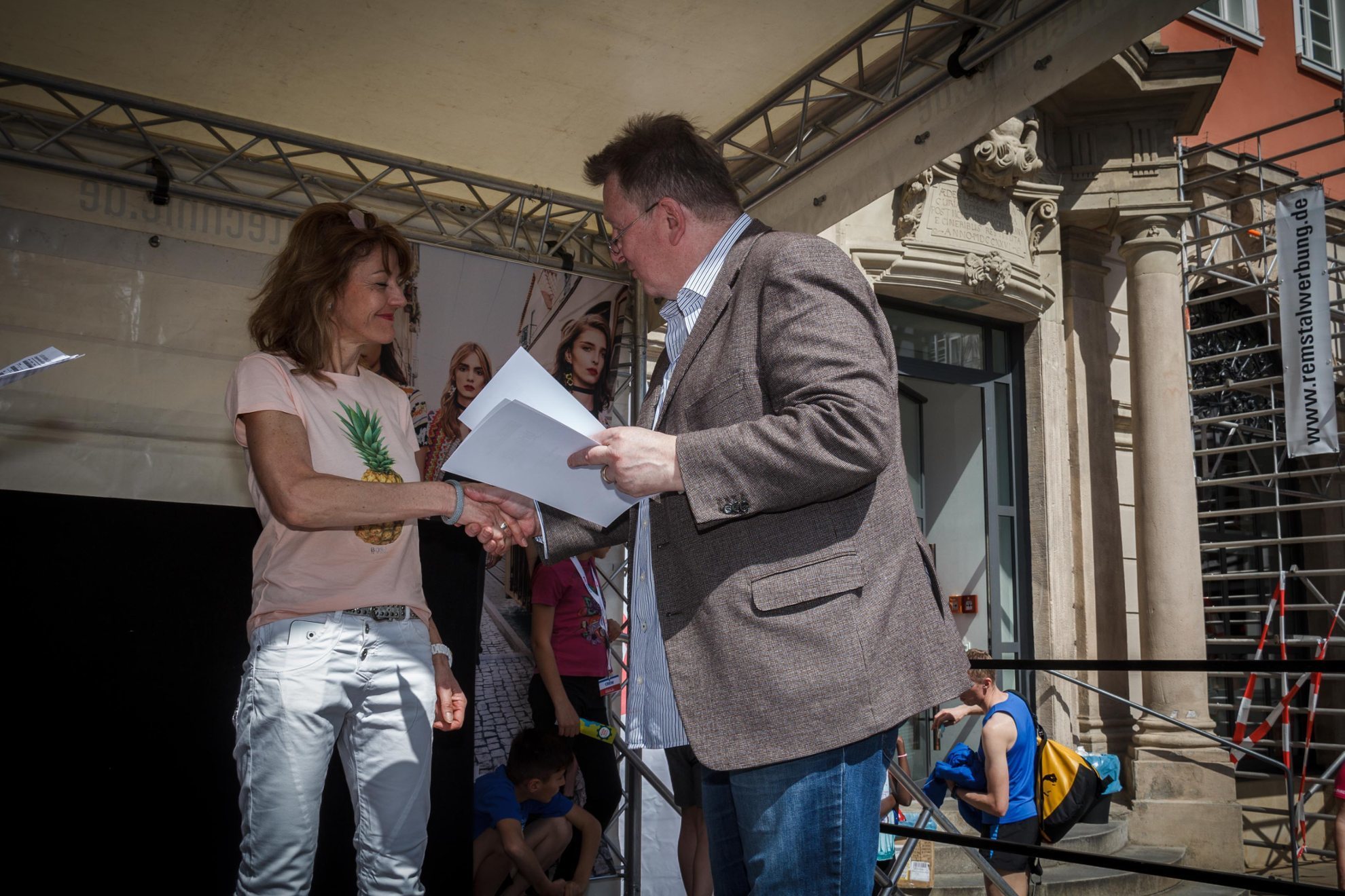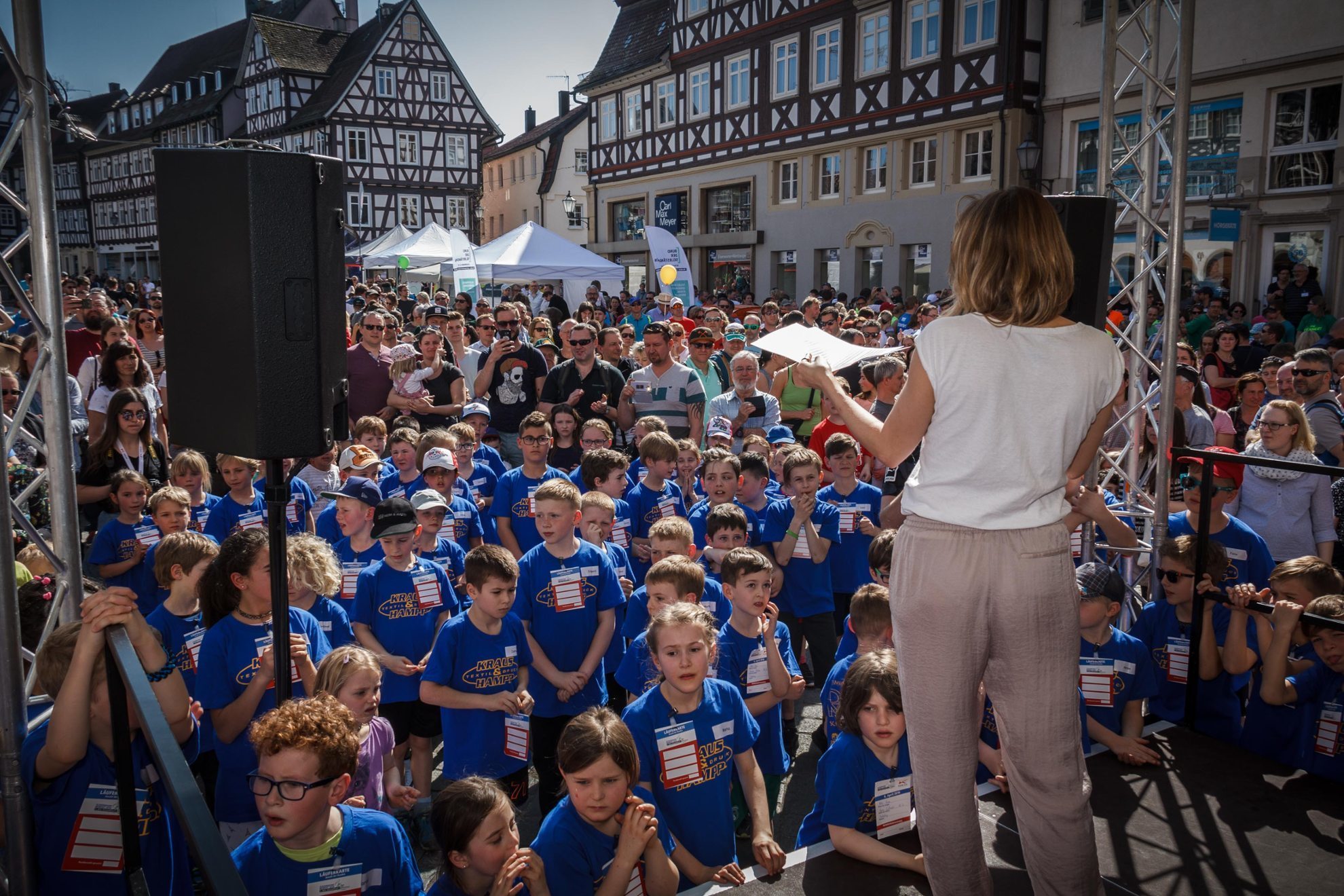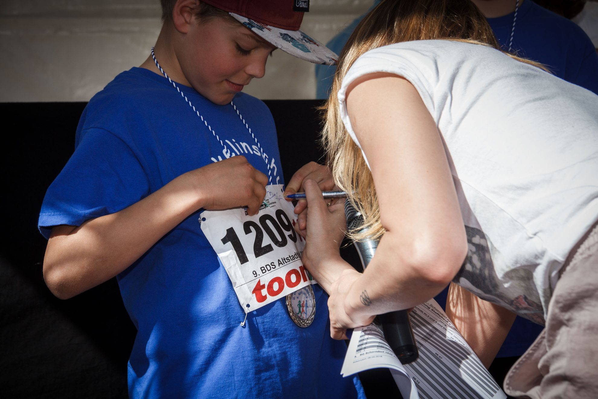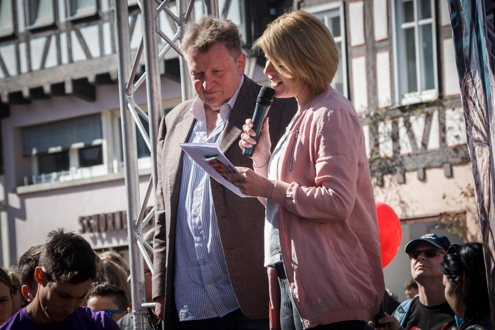 Die größere Promi-Dichte gab es diesmal beim Sponsorenlauf: Sportpatin Monika Sozanska gab hier den Startschuss - mit etwas Verzögerung, da sich der Schuss nicht löste. „Ich muss das mal trainieren“, meinte die Weltklasse-Degenfechterin lachend. Auch Marcel Fehr und Hanna Klein waren wieder involviert: beim Sponsorenlauf als Trainer der „Flitzefüchse“, dem Team des Fuchshofkindergartens. Schließlich geht es auch um einen sehr guten Zweck. Der Erlös kommt wie in den Vorjahren dem Projekt „Kinderreich“ des Kinderschutzbundes Rems-Murr zugute.
