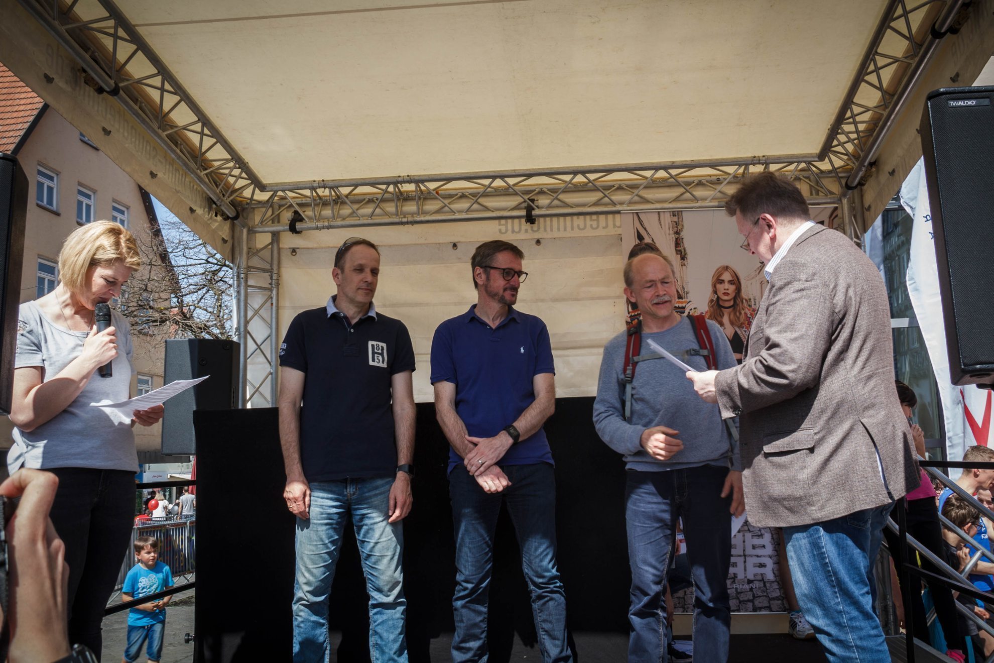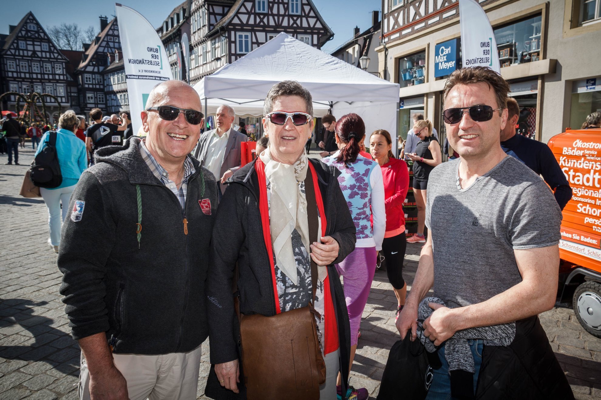Der BDS-Vorsitzende Jürgen Linsenmaier freute sich über das tolle Wetter. Er stand schwer bewaffnet auf dem Startpodium. Linsenmaier hatte gleich zwei Pistolen bei sich. Ursache: Dem Unternehmen, das eigentlich die Waffen stellt, sind ebendiese gestohlen worden. Und es konnte kurzfristig keinen Ersatz auftreiben. Also sprang die SG Schorndorf ein. Problem: Die SG hatte keine Munition. Diese wiederum aber konnte das Unternehmen stellen. Wegen dieses Hin und Hers und der Unsicherheit, ob die Waffen funktionieren, ging man beim BDS lieber auf Nummer sicher – und Linsenmaier nahm zur Sicherheit beide Pistolen mit. Schließlich sollte der Hauptlauf pünktlich starten.