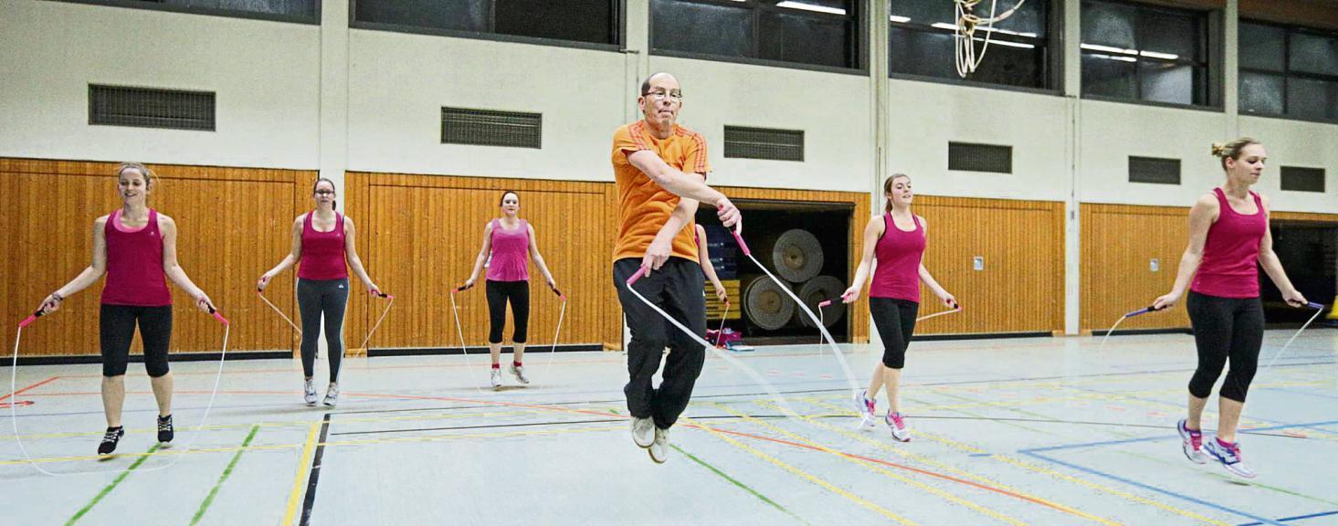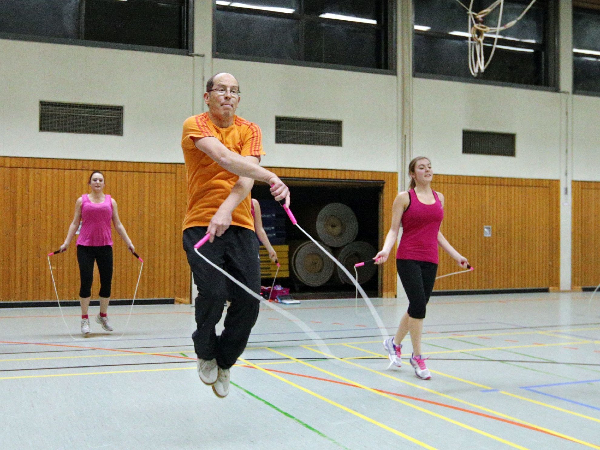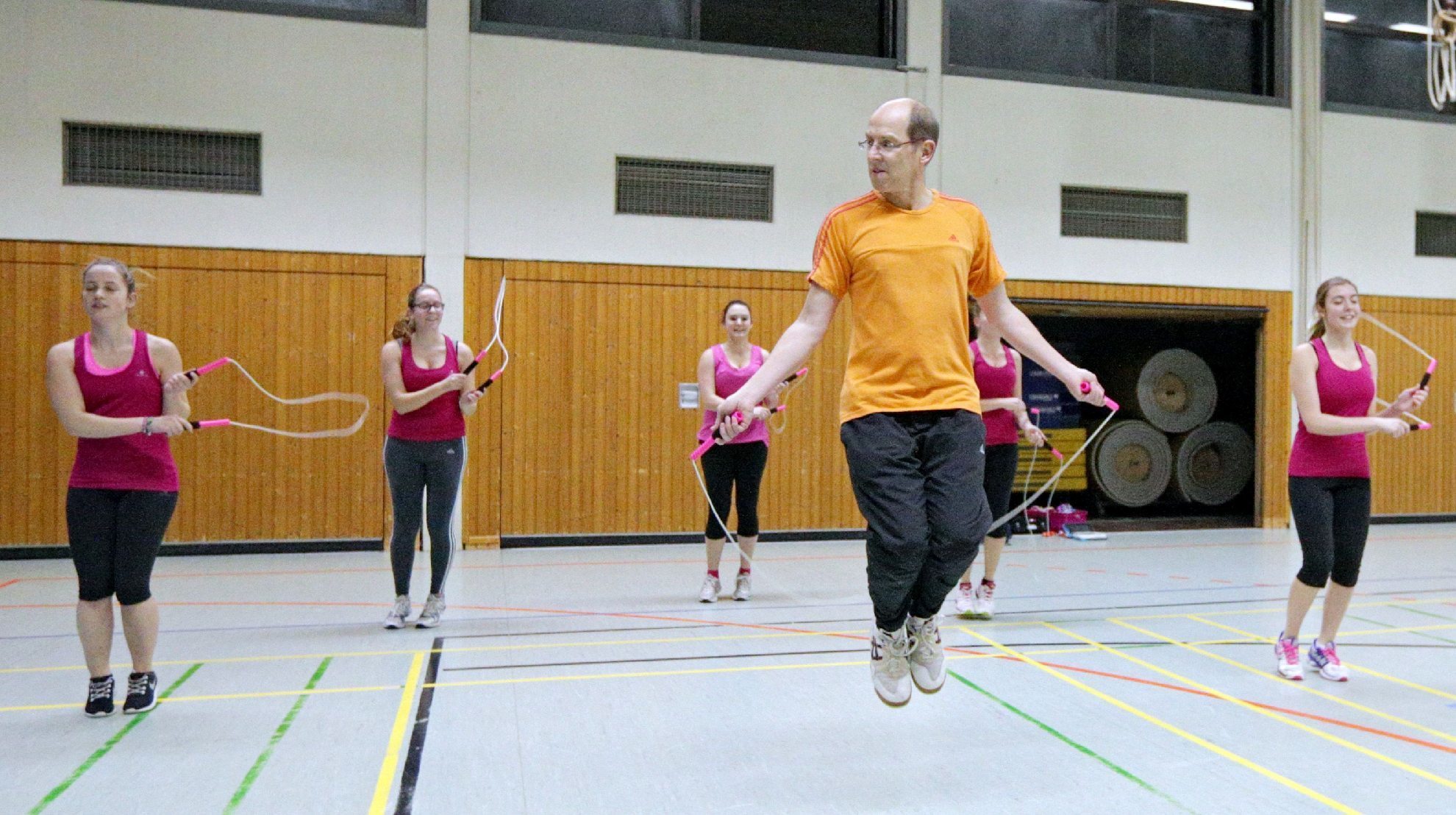 Und ich kann auch sofort loslegen. „Einfach mal springen“, sagt Petra Trübenbach und drückt mir ein Sprungseil in die Hand.