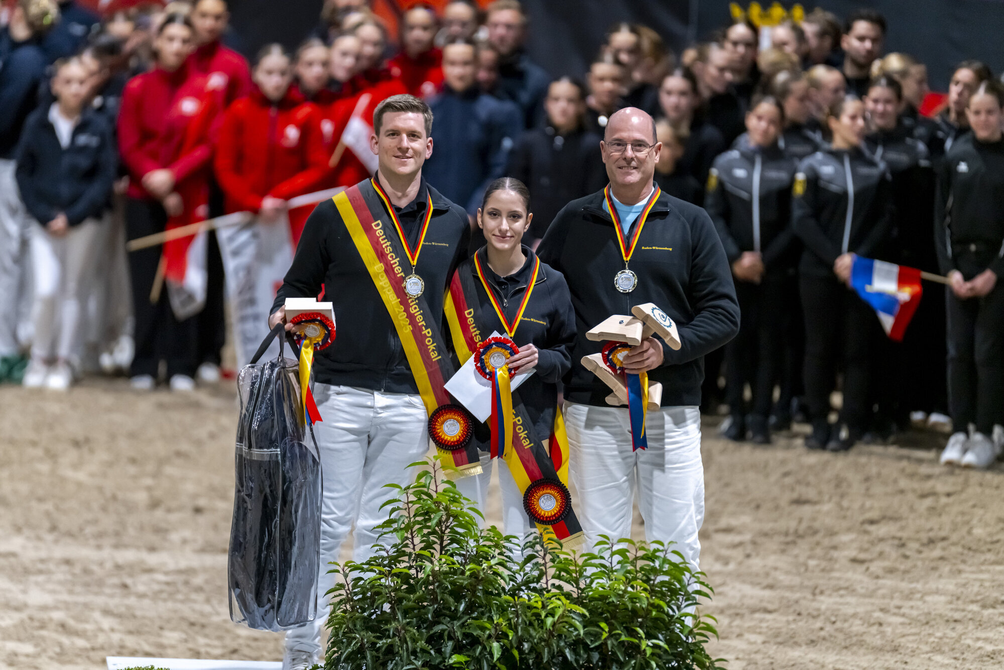 Die besten M-Gruppen- und Doppelvoltigierer aus den Landesverbänden trafen sich in Aachen zum nationalen Vergleich. Den Höhepunkt lieferten die Baden-Württembergischen Meister Simon Reber und Laura Eisemann mit ihrem