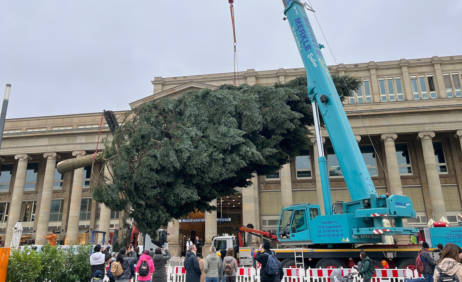 1. Advent steht bevor: Weihnachtsbaum auf dem Schlossplatz Stuttgart aufgestellt