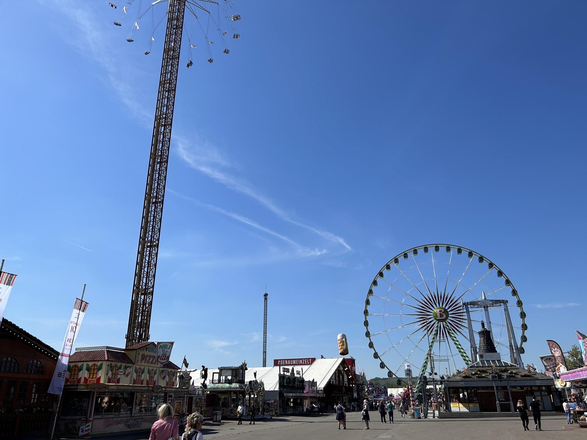 Drei junge Frauen aus Stuttgart sind gerade erst auf dem Wasengelände angekommen und schon auf dem Weg zur ersten Achterbahn. Ausgegeben haben sie bisher noch nichts. 50 Euro haben sie pro Kopf dabei, mehr wollen sie auch nicht ausgeben. „Wir wollen hauptsächlich Achterbahn fahren und am Ende noch etwas Kleines essen.“