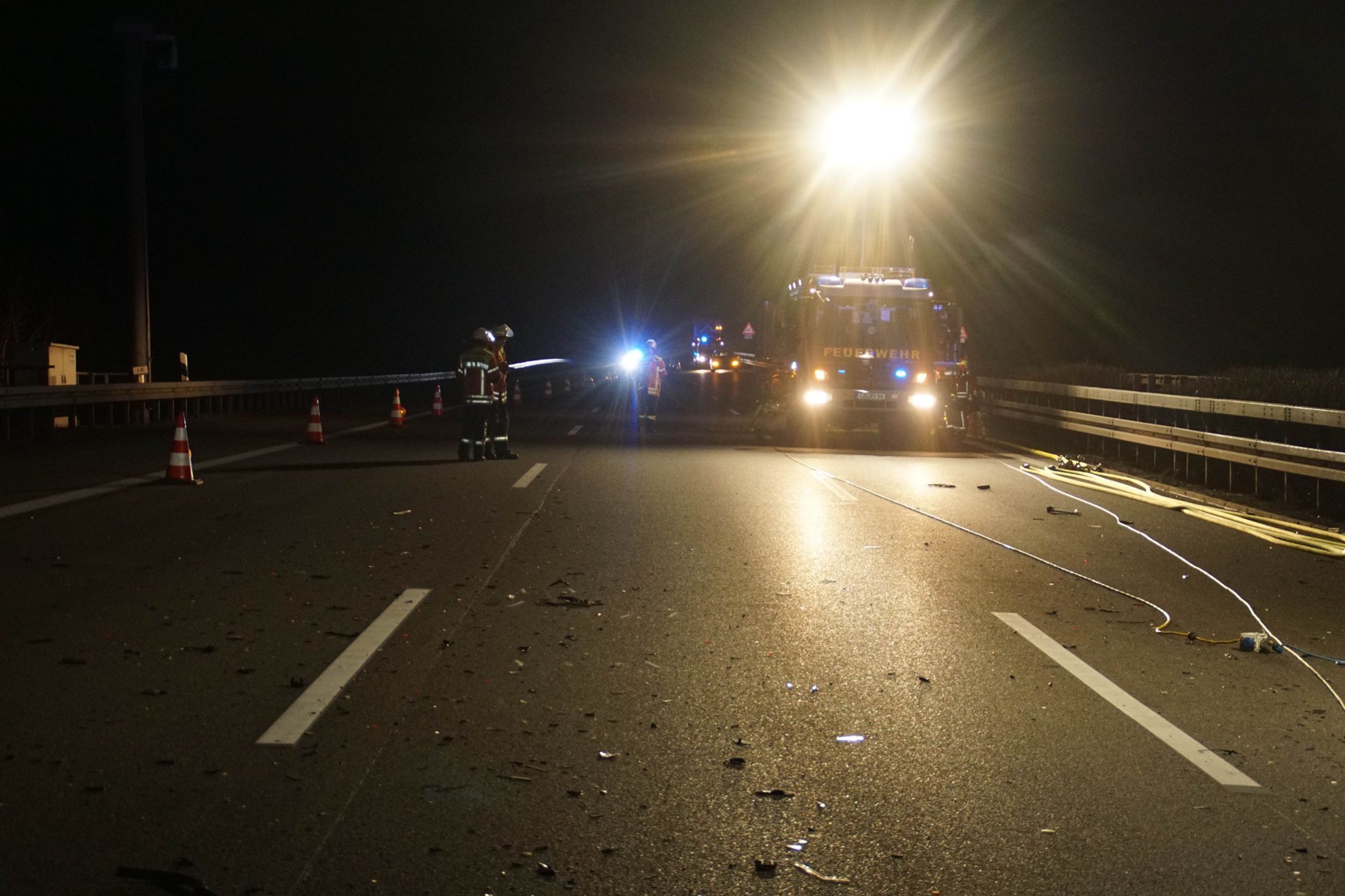 Für die Unfallaufnahme und Verkehrsmaßnahmen waren neun Streifenbesatzungen der Polizeipräsidien Ludwigsburg und Heilbronn eingesetzt. Mitarbeiter der Autobahnmeisterei Ludwigsburg und 21 Einsatzkräfte der Feuerwehr Mundelsheim unterstützten die Bergungs- und Reinigungsmaßnahmen.