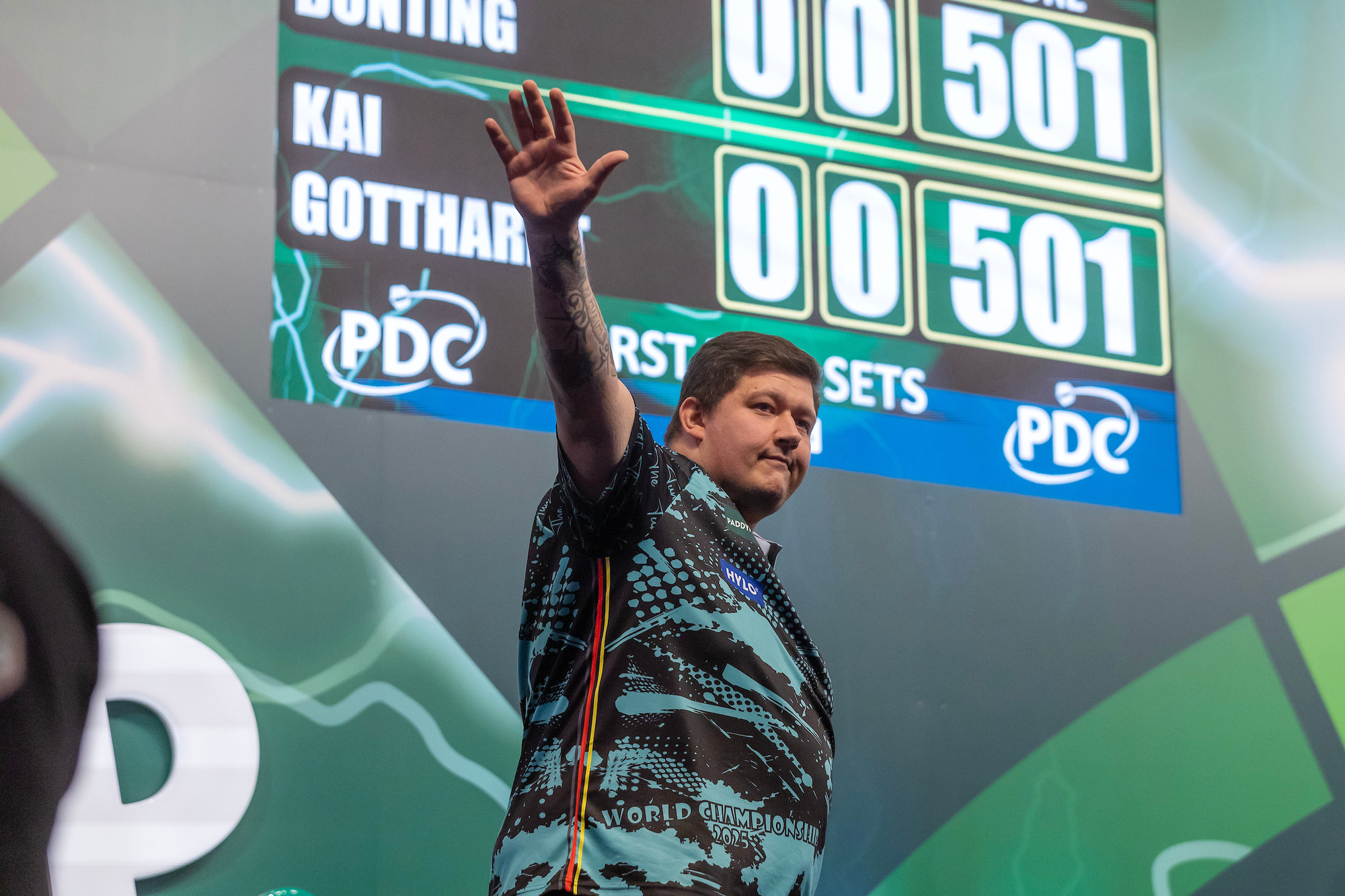 Satz 3 startete Bunting mit einem Maximum. Und setzte damit den Ton für den weiteren Verlauf des Matches. Auch die Trefferquote auf die Doppel wurde bei Bunting nun besser und besser. Die 2:1-Führung in den Sätzen folgte. Gotthardt konnte sowohl im Scoring als auch bei seiner Doppelquote nicht mehr an sein Niveau aus dem Eröffnungssatz anknüpfen. Und so musste er bei seiner WM-Premiere letztlich mit 1:3 die Segel streichen. Für seinen beherzten Auftritt gegen den großen Favoriten muss sich der Esslinger aber keineswegs grämen - was auch Bunting nach seinem Sieg bei Sky Sports unterstrich: „Es war richtig schwierig. Kai ist ein großartiger Spieler. Manchmal hatte ich wirklich zu kämpfen, aber das Publikum hat mich wirklich durchgebracht.“