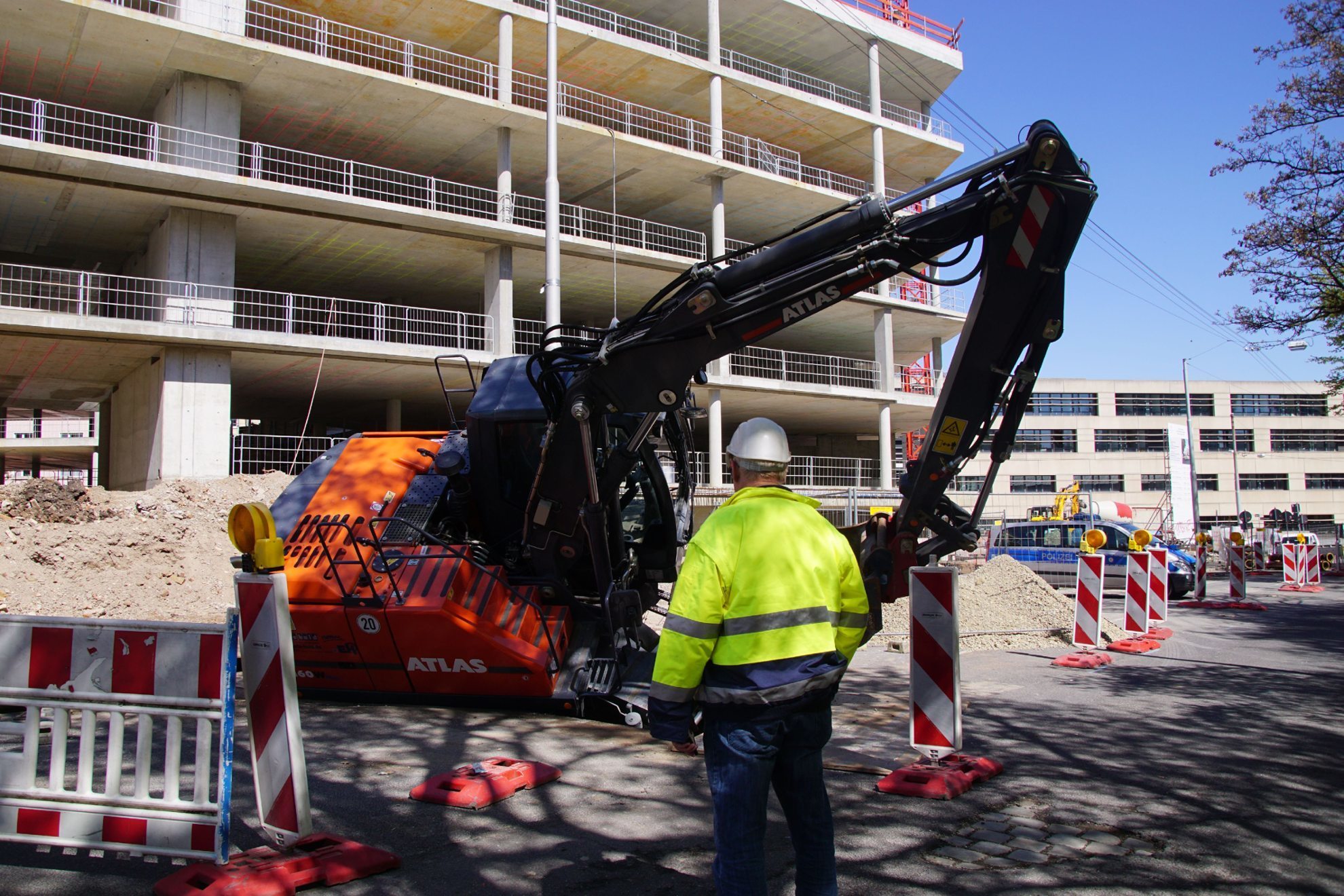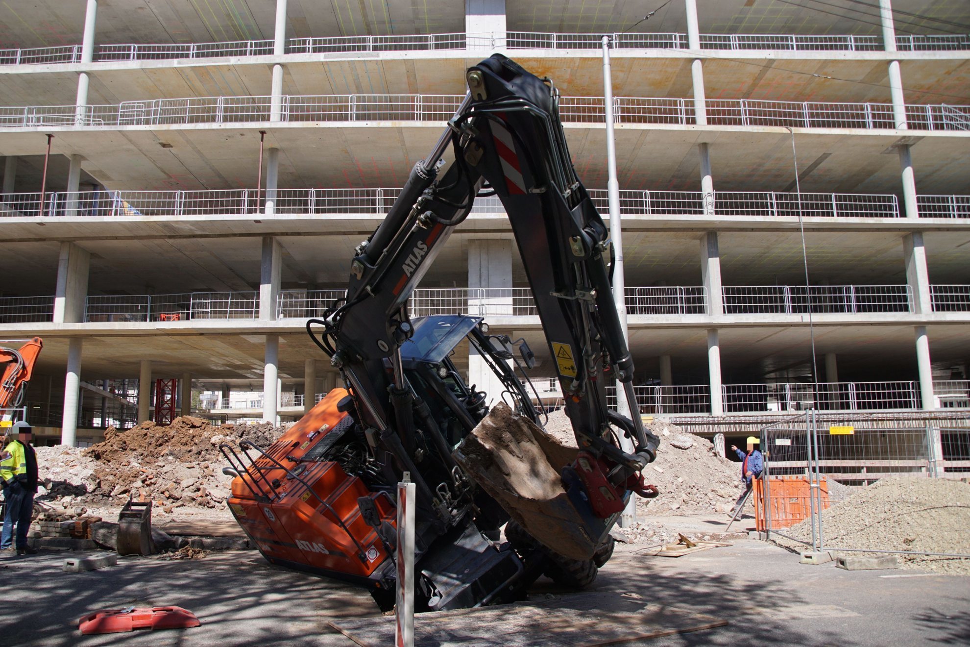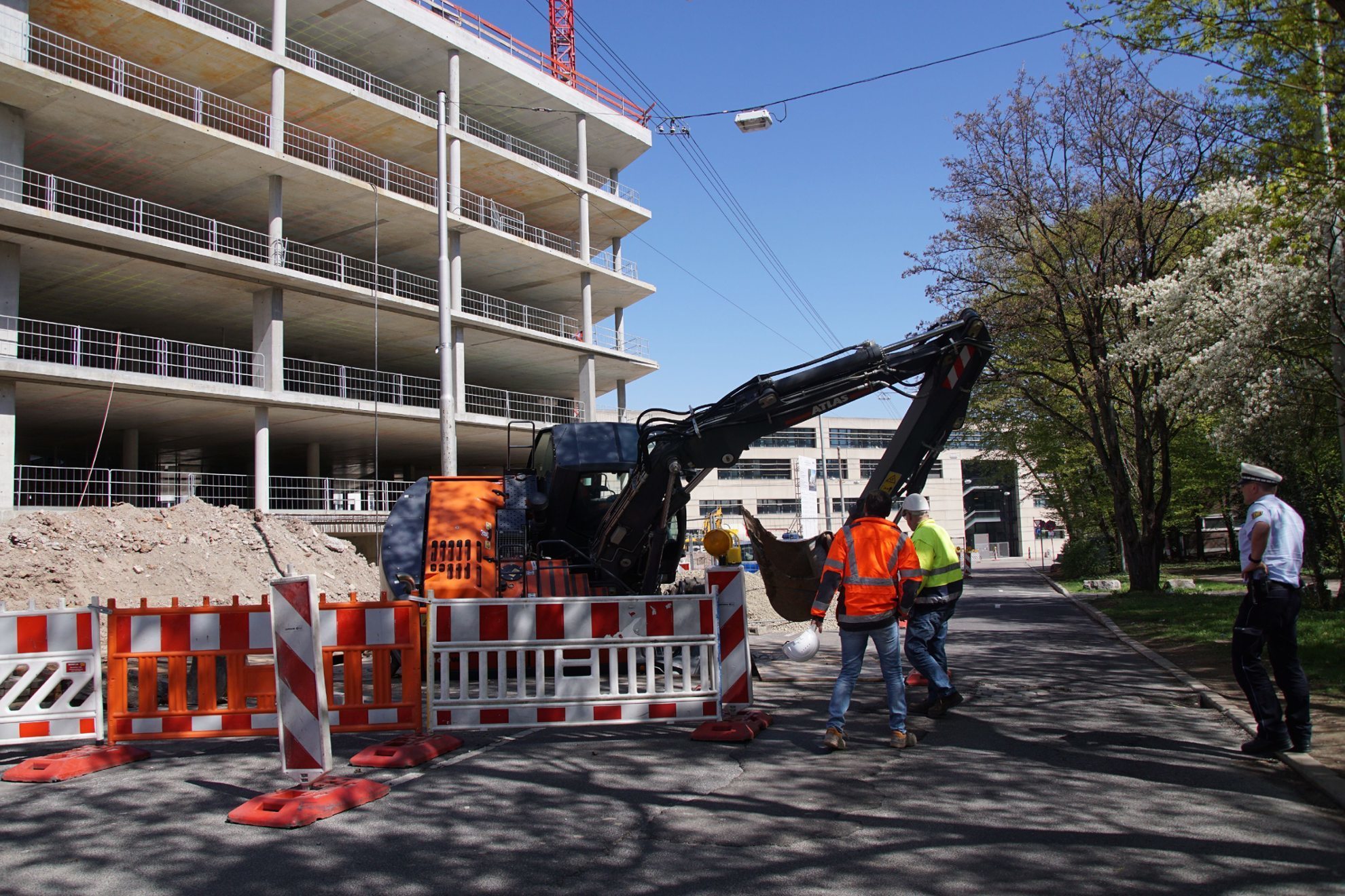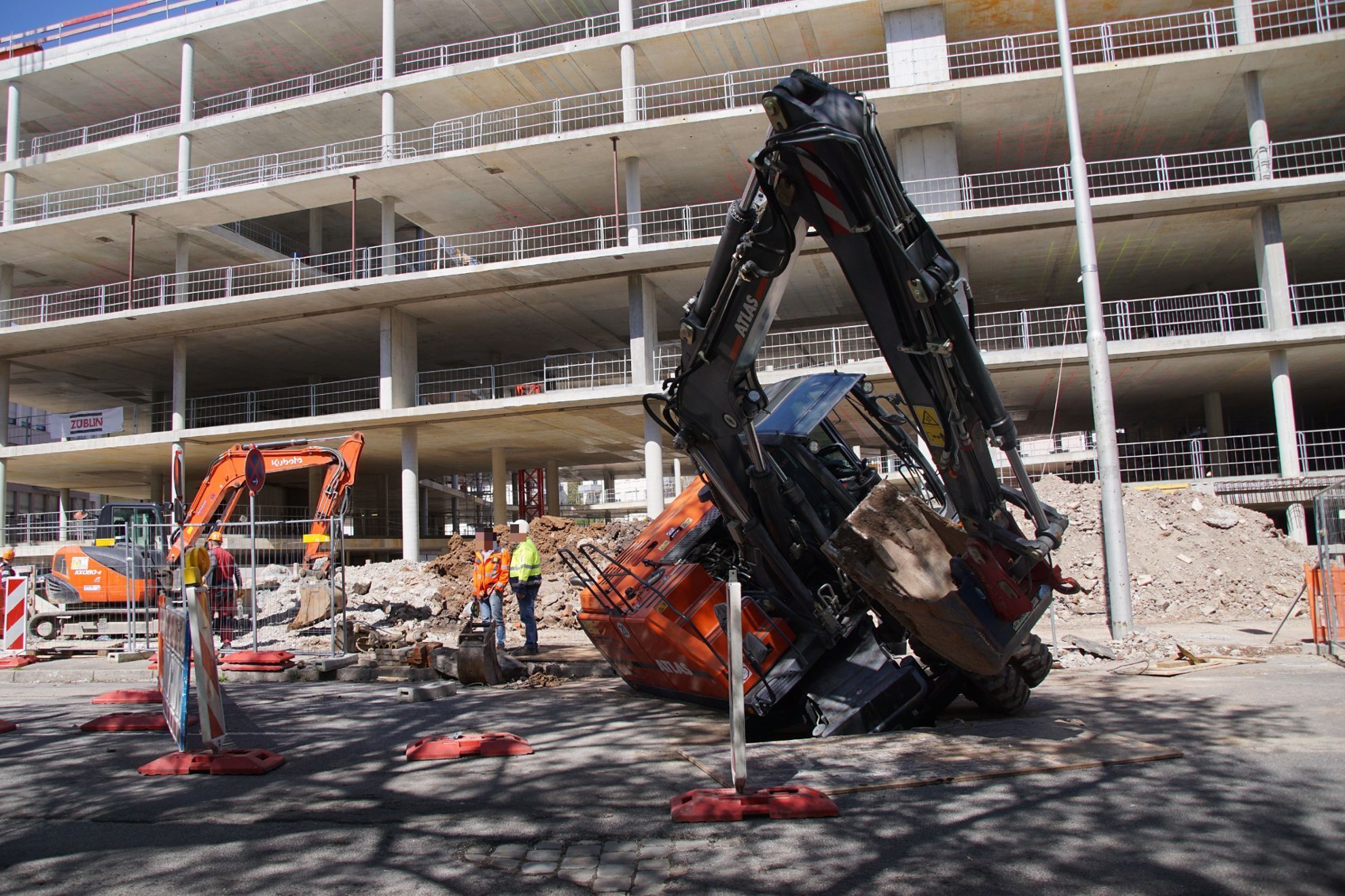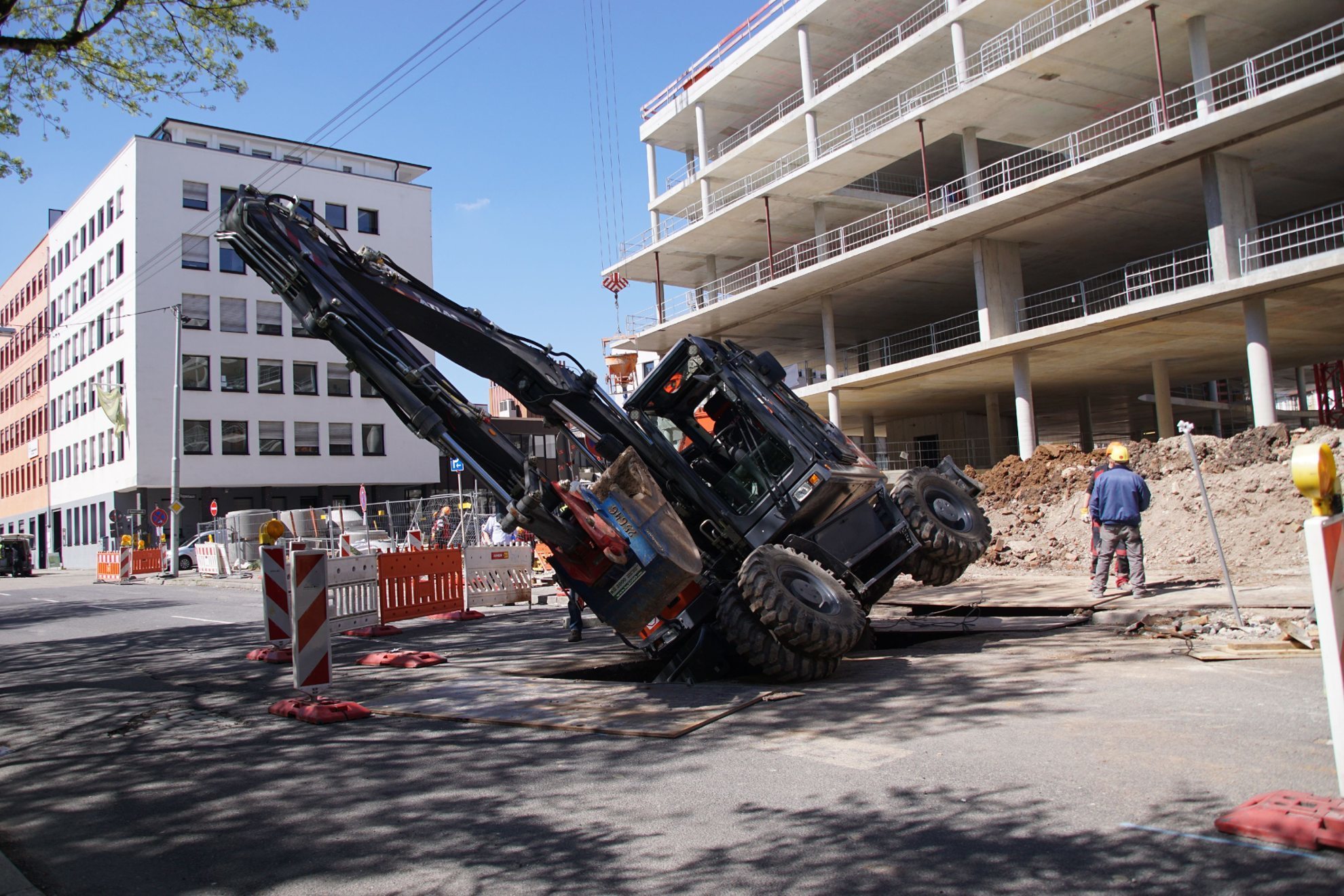 Am Mittwochmittag ist gegen 12:15 ein Bagger auf einer Baustelle in der Rosenbergstraße in eine Baugrube abgerutscht und daraufhin umgekippt. Die Ursache dafür ist zurzeit noch unklar.