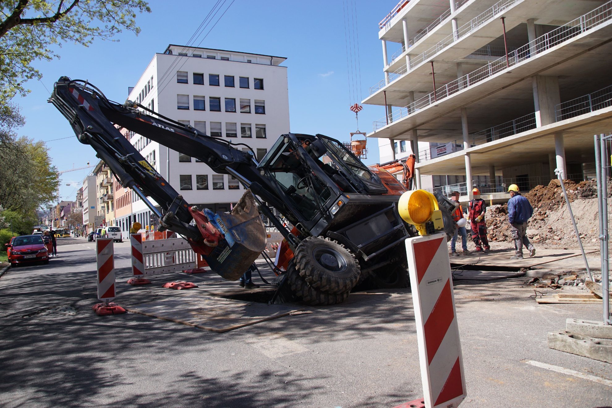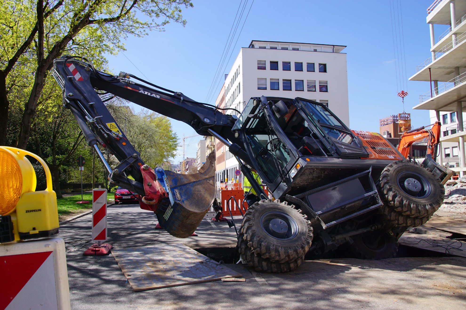 Bei dem Unfall ist nach Angaben der Polizei Stuttgart kein gravierender Sachschaden entstanden. Der 52-Jährige, der zum Unfallzeitpunkt den Bagger fuhr, wurde nicht verletzt.
