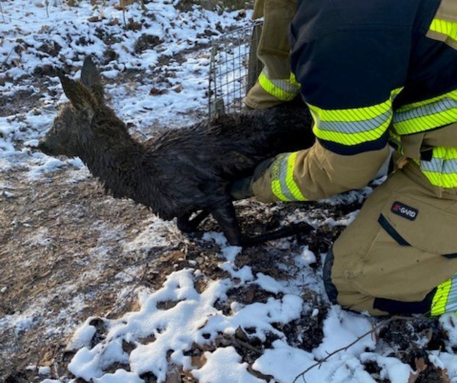 In der Grube befanden sich glücklicherweise nur wenige Zentimeter Wasser und Schlamm. Das Reh konnte sich aber dennoch nicht selbstständig befreien. Die Einsatzkräfte konnten das Reh mithilfe eines Seils sichern und aus der Grube heben. Das Reh wurde vom städtischen Tiernotdienst untersucht. Es trug bei seinem Sturz in die Grube keine Verletzungen davon. Der Feuerwehreinsatz war nach rund einer Stunde beendet.