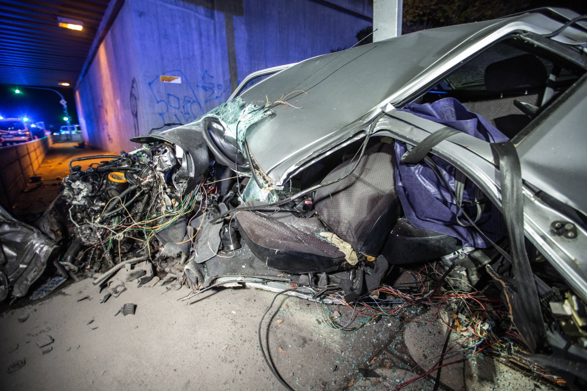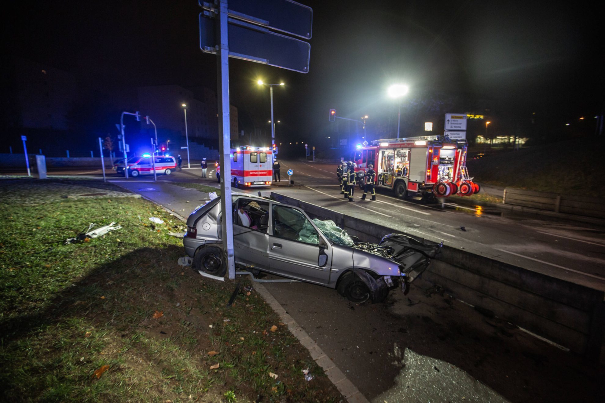 Zuvor war das Auto, ein Citroën, einer Streife aufgefallen, weil es in Schlangenlinien fuhr. Nachdem die Polizisten in aufforderten, anzuhalten, versuchte er der Kontrolle zu entgehen, beschleunigte das Fahrzeug und fuhr auf der Löwentorstraße mit überhöhter Geschwindigkeit in Richtung Stuttgart-Münster. An einer Eisenbahnunterführung verlor er die Kontrolle über sein Fahrzeug, prallte gegen eine Spritzschutzwand und ein Verkehrszeichen. Der junge Mann wurde in seinem Pkw eingeklemmt und musste von der Feuerwehr befreit werden. Der Verletzte kam nach notärztlicher Erstversorgung mit einem Rettungswagen in ein Krankenhaus. Ersten Ermittlungen zufolge ist der 29-Jährige nicht im Besitz einer gültigen Fahrerlaubnis.