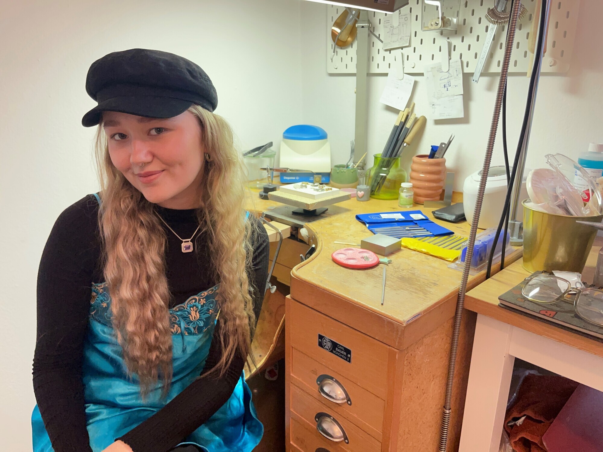 Nach ihrem Abitur 2022 stand Chiara, wie viele Jugendliche, vor der großen Frage nach der Zukunft. Schon während der Schulzeit war ihr klar geworden, dass sie später gerne handwerklich arbeiten will. Dennnoch hat sie erstmal nach Studiengängen gesucht und überlegt, Zahnmedizin zu studieren. Erst später ist sie auf die Ausbildung zur Goldschmiedin gestoßen.