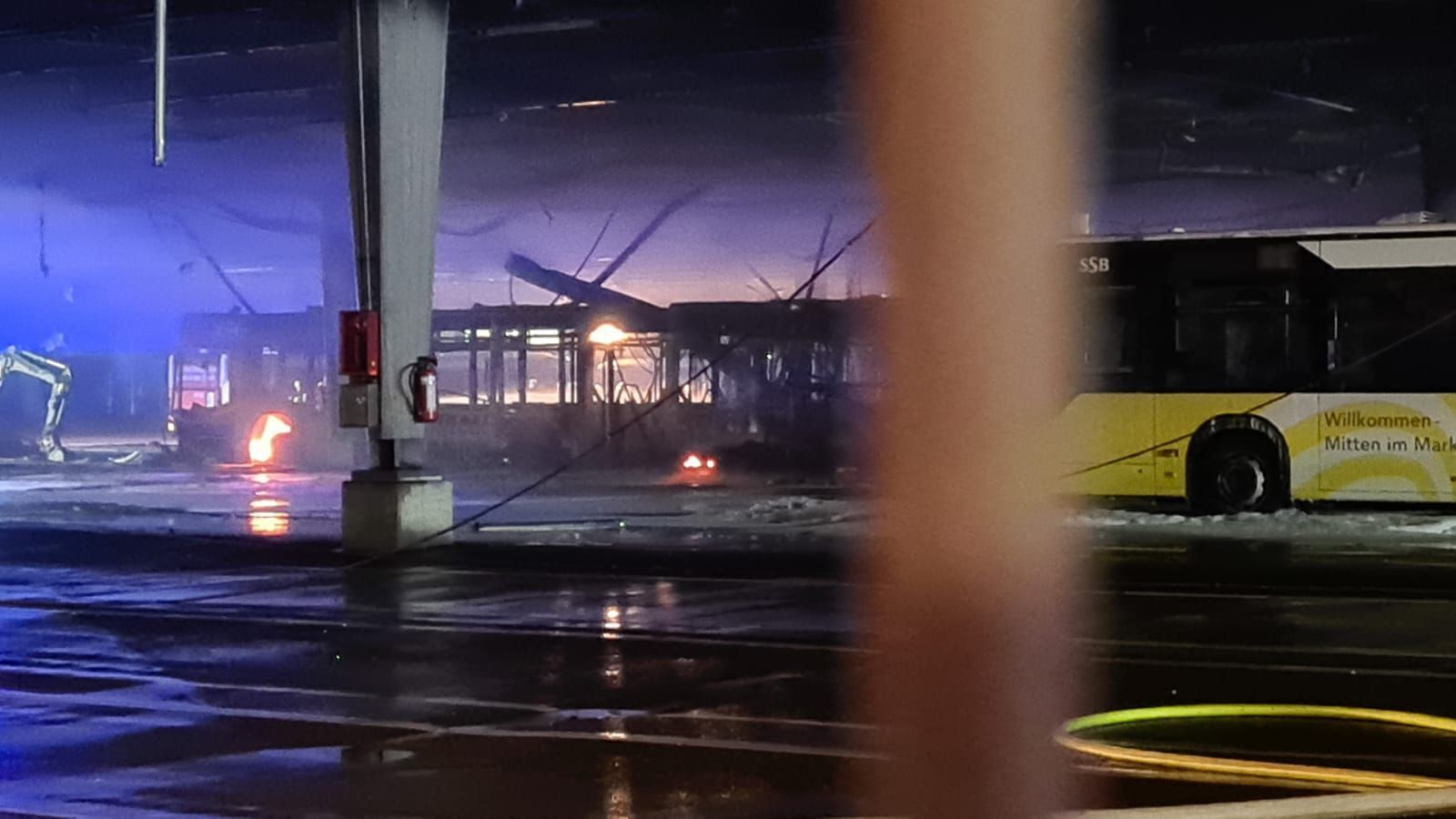 SSB-Informationen zufolge sind bis zu zehn Busse abgebrannt. Der Sachschaden dürfte demnach im zweistelligen Millionenbereich liegen.