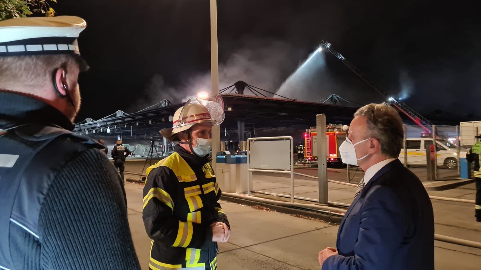 Es kam infolgedessen zu einer massiven Rauchentwicklung. Bürger sollten deshalb Fenster und Türen geschlossen halten, der Bereich soll großräumig umfahren werden.