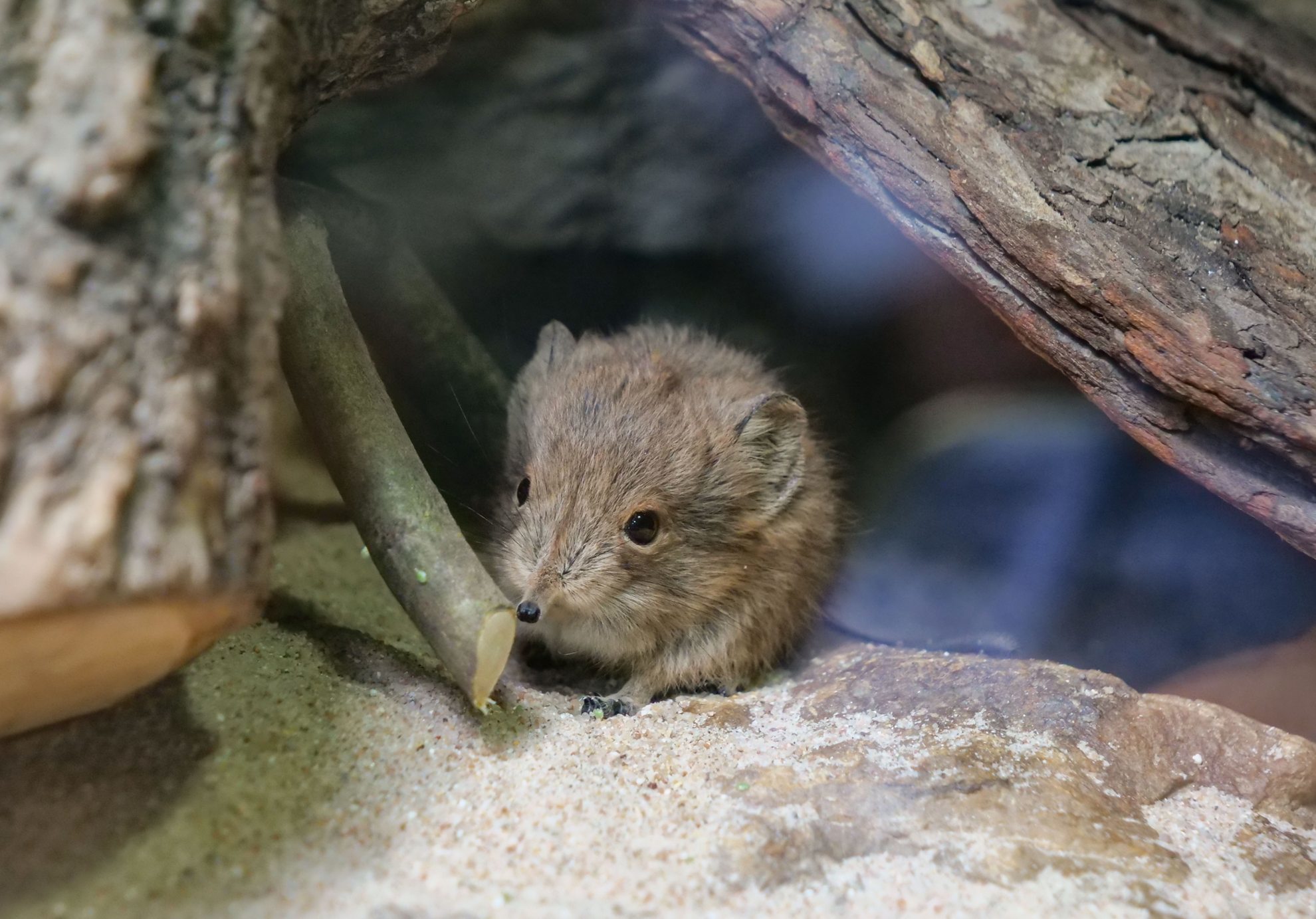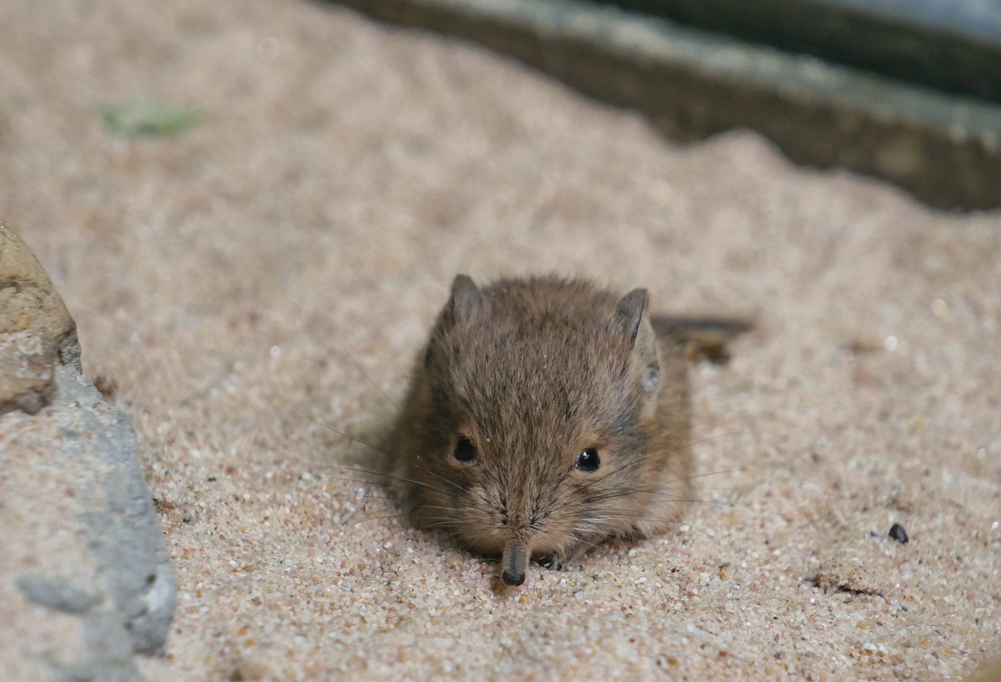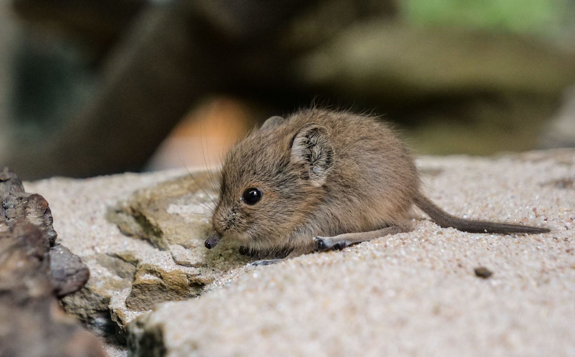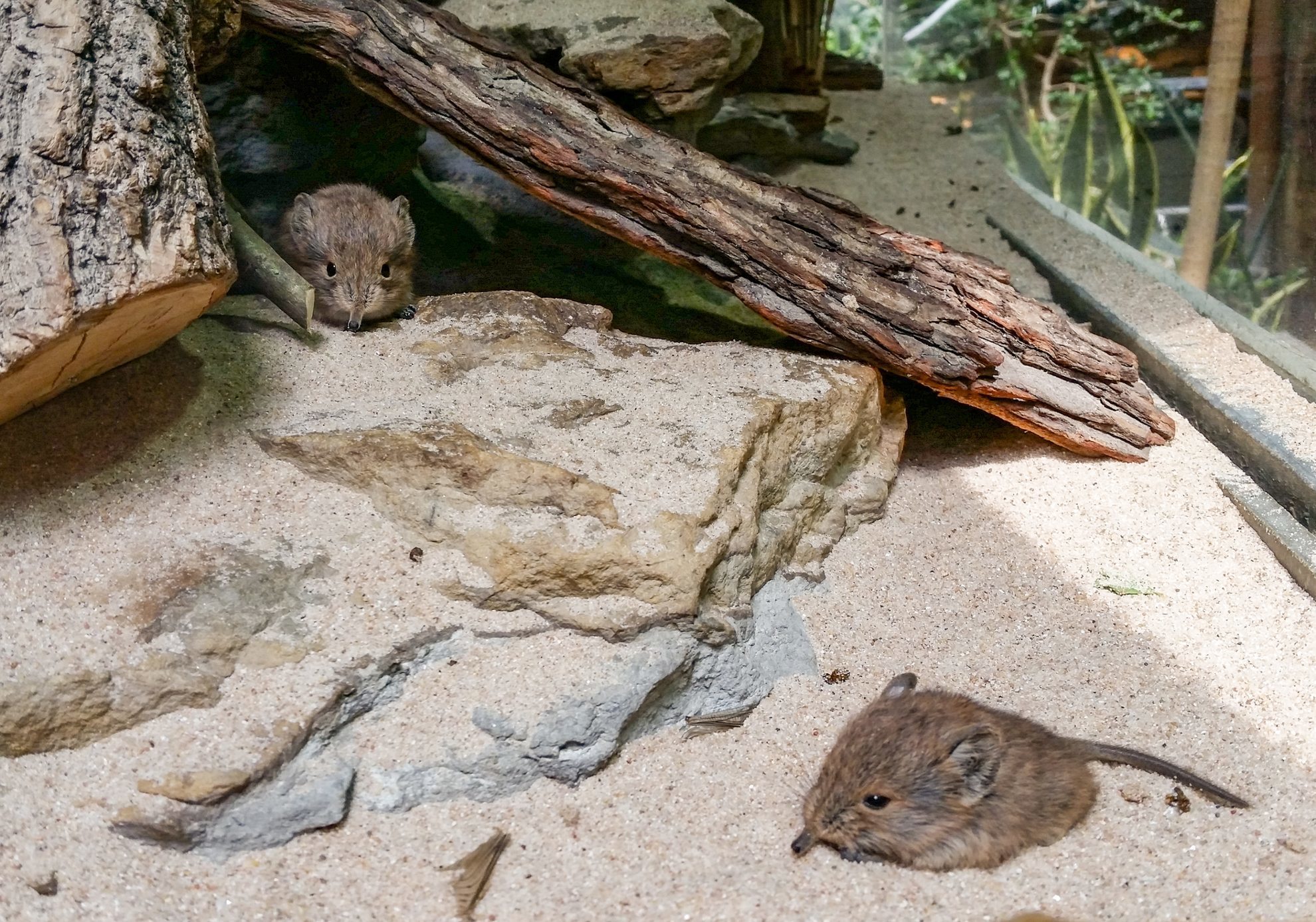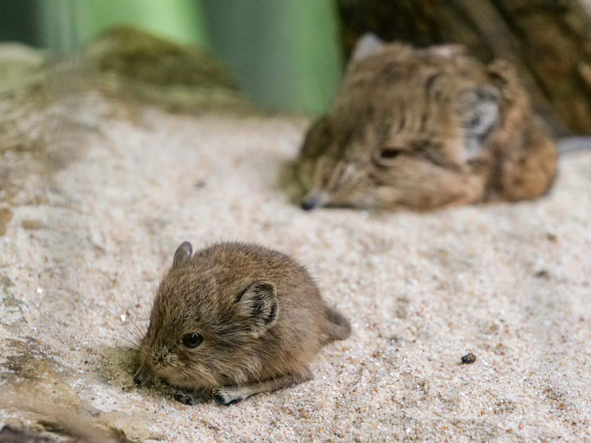 Die originellen Tiere werden oft mit Mäusen verwechselt. Dabei sind die Kurzohrrüsselspringer weder mit Nagetieren noch Spitzmäusen verwandt. Rüsselspringer stellen eine eigene Ordnung unter den Säugetieren dar. Darunter sind Rüsselhündchen mit einer Körperlänge von 30 Zentimetern von Kopf bis Hinterteil die größten Vertreter. Kurzohrrüsselspringer sind die kleinsten mit nur elf Zentimetern – und maximal 50 Gramm Körpergewicht bei erwachsenen Tiere. Deshalb sind die erst rund eine Woche alten Babys derzeit fast nur kleine „Fellpuschel“ mit Knopfaugen und langer Nase. Doch haben sie eine kurze Kindheit: Die Jungtiere werden schon nach einem Monat so groß – oder klein – wie ihre Eltern sein. Nach gerade einmal sechs Wochen ist der Nachwuchs der Kurzohrrüsselspringer sogar bereits selbst geschlechtsreif.