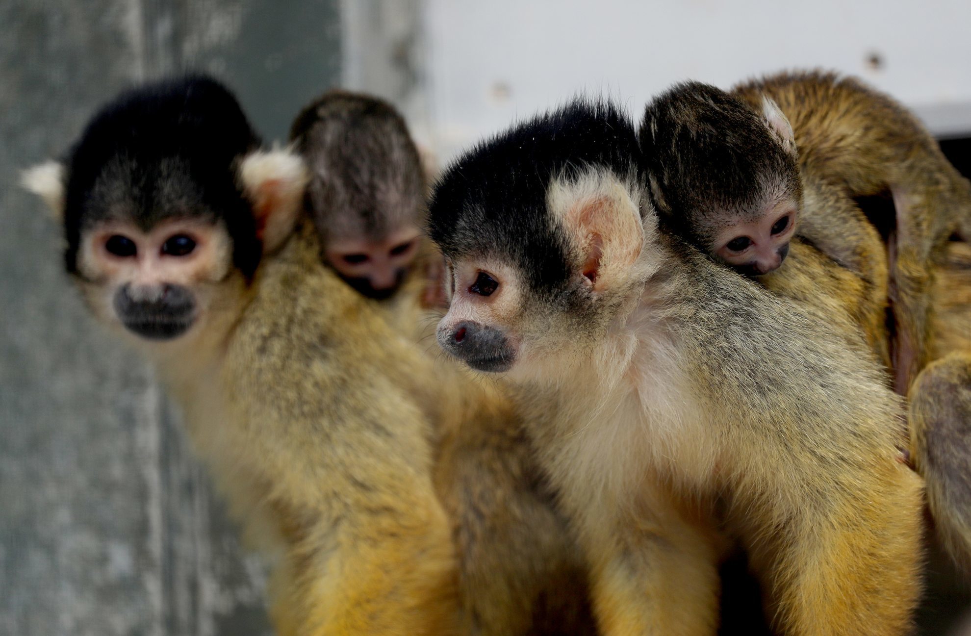 Dank der jüngsten Nachkommenschaft ist die Gruppe der Schwarzkappen-Totenkopfäffchen auf den Subtropenterrassen nun auf 15 Tiere angewachsen. In ihrer Heimat Südamerika umfassen die „Affenbanden“ manchmal sogar über hundert Tiere. Als Erkennungszeichen der Mitglieder untereinander dient ein Duftausweis, für den sich die Affen Urin in Fell und Schwanz reiben. Ihr Speiseplan ist vielseitig: Darauf stehen Insekten ebenso wie Schnecken, Frösche, Eier, Vögel, Früchte und Sämereien. Leider sind heute alle 13 Arten und Unterarten sehr bedroht.