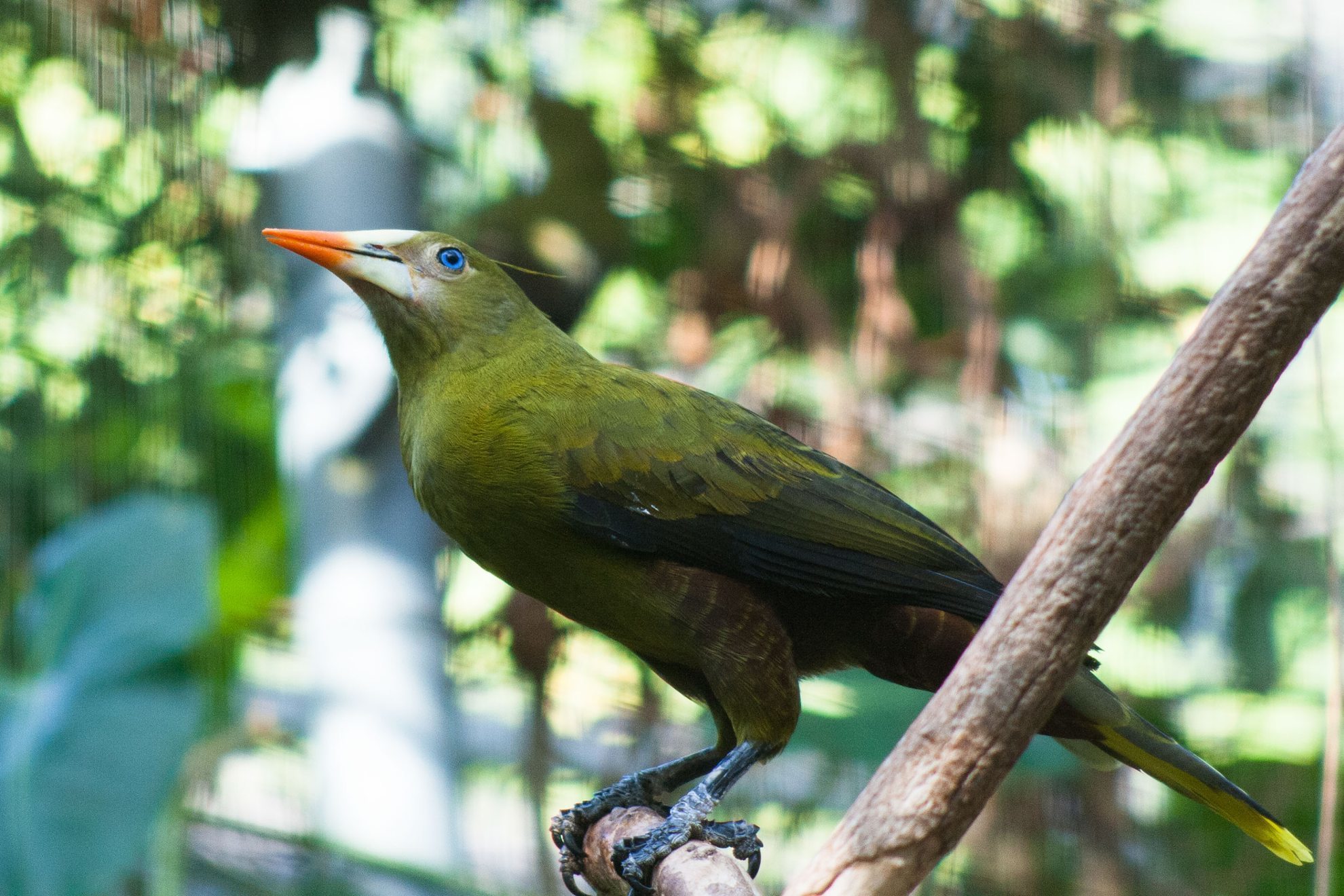 Sechs neue Grünschopfstirnvögel sind zum Schutz der anderen Tiere in der Voliere untergebracht. Die Vögel ernähren sich neben Insekten, Früchten und Samen auch von Eiern oder Jungvögeln.