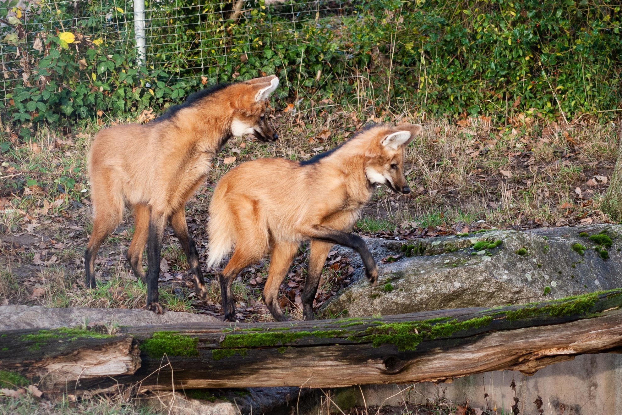 Stuttgart. Zu den ganz besonderen Begegnungen in der Wilhelma in Stuttgart gehört es, einmal die Mähnenwölfe zu erleben. Sie sind sehr zurückhaltend und bleiben daher oft unbemerkt. Besonders schwer zu entdecken waren sie in den vergangenen Wochen. Denn im Oktober sind zwei neue Tiere eingezogen, die sich erst eingewöhnen mussten. Mit etwas Glück lassen sich die beiden südamerikanischen Wildhunde nun aber beim gemeinsamen Spiel beobachten.