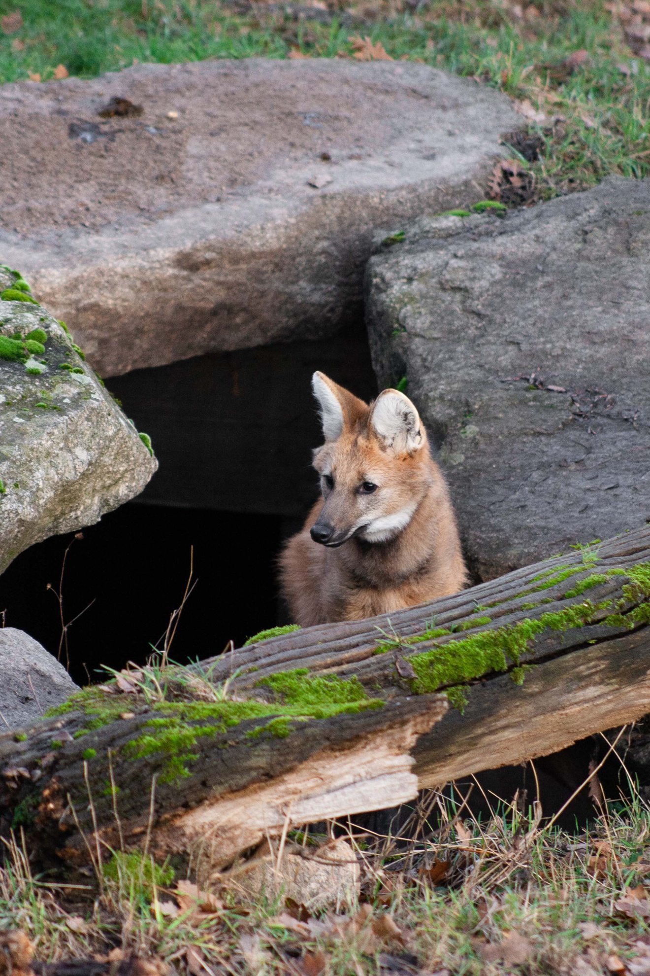 Die zwei Brüder Bodi und Doyle kommen aus dem Zoo Hodonín in Tschechien und sind gerade ein Jahr alt geworden. Ihr Revier haben die jungen Geschwister nach ihrer Ankunft zunächst etwas zögerlich erkundet. „Mähnenwölfe sind eher scheue Tiere und mögen viel Trubel nicht“, erklärt Tierpflegerin Andrea Timm. „Sie schauen sich neue Sachen lieber aus der Distanz an. Da sie auf der Reise getrennt waren, haben sich die beiden im ersten Moment sogar gegenseitig nicht wiedererkannt.“