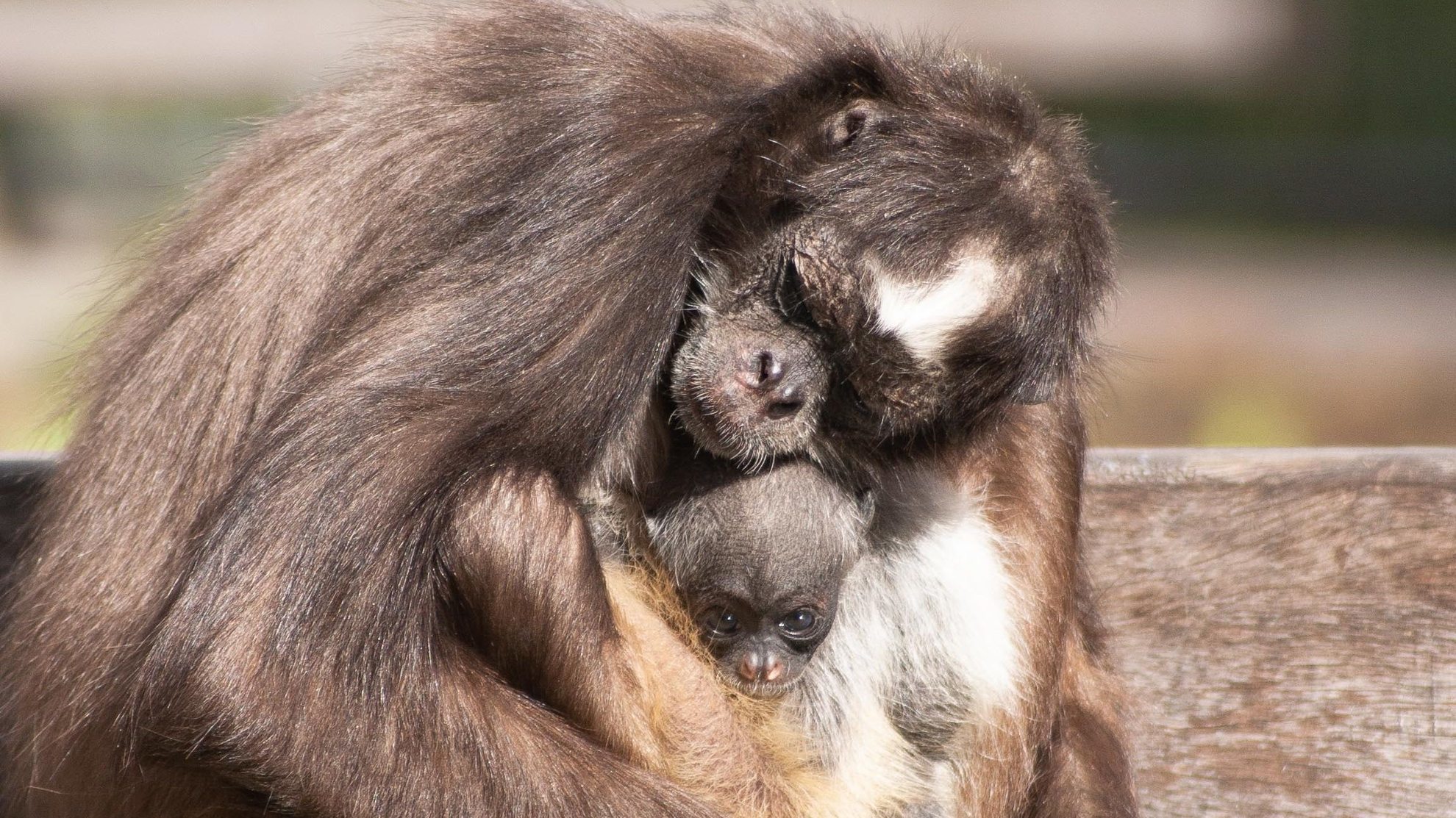 Für Tolgas Mutter Siesta ist es bereits der zwölfte Nachwuchs. In den ersten Monaten trägt sie die Verantwortung für das Jungtier, unterstützt von Weibchen Fudge, die ebenfalls zur der kleinen Familie gehört. Etwa ein Jahr lang wird der Nachwuchs gesäugt, nach zwei Jahren ist er selbstständig. Aus dem Schutz seiner Mutter wird sich Tolga erst in einigen Monaten begeben. Bis dahin müssen Besucher noch ein wenig genauer hinschauen, um ihn zu entdecken. Mit seinem silbergrauen Haarkleid ist er an Siestas Bauch perfekt getarnt.